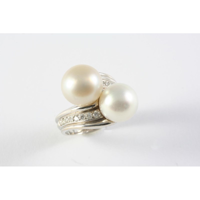 A CULTURED PEARL AND DIAMOND CROSS-OVER RING
