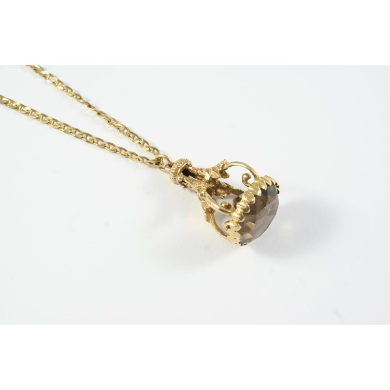 A SMOKY QUARTZ AND GOLD FOB PENDANT