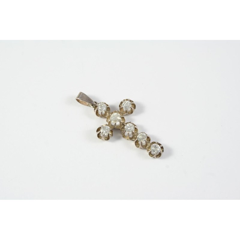 A DIAMOND CRUCIFORM PENDANT mounted with circular old-cut diamonds, 4 x 2cm including pendant loop