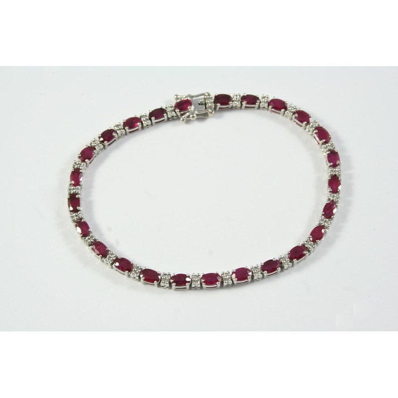 A RUBY AND DIAMOND LINE BRACELET alternately set with oval-shaped rubies and pairs of circular-cut diamonds, in white gold, 17.5cm
