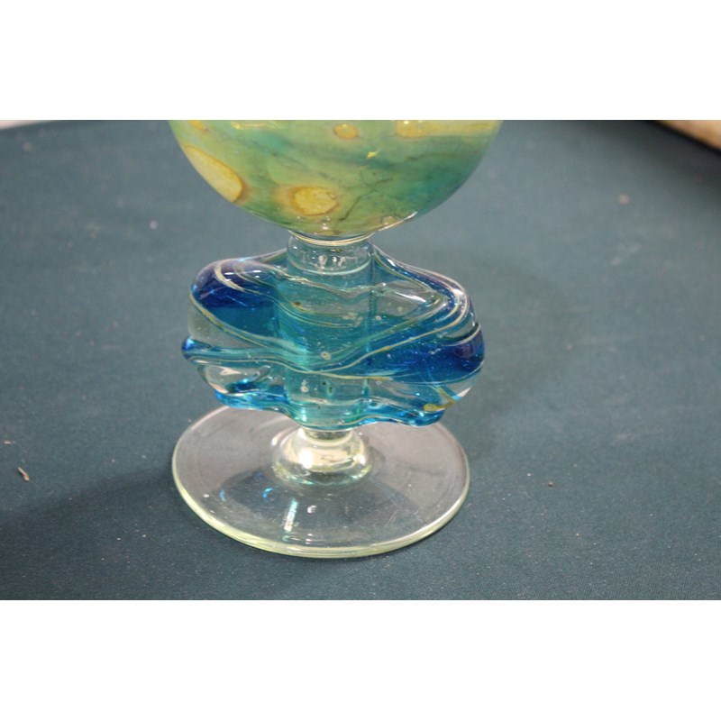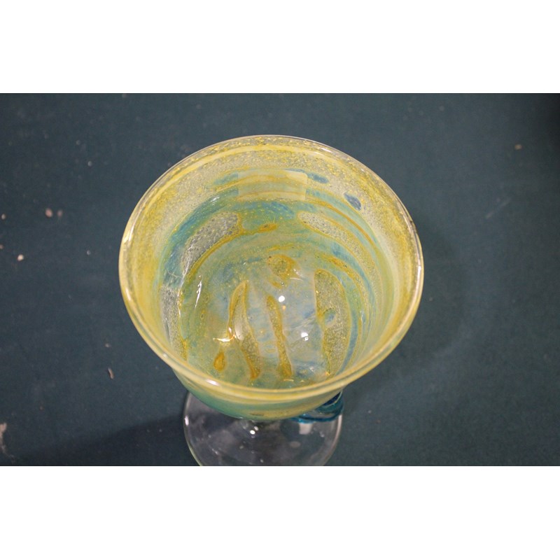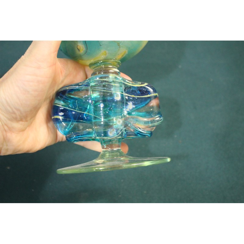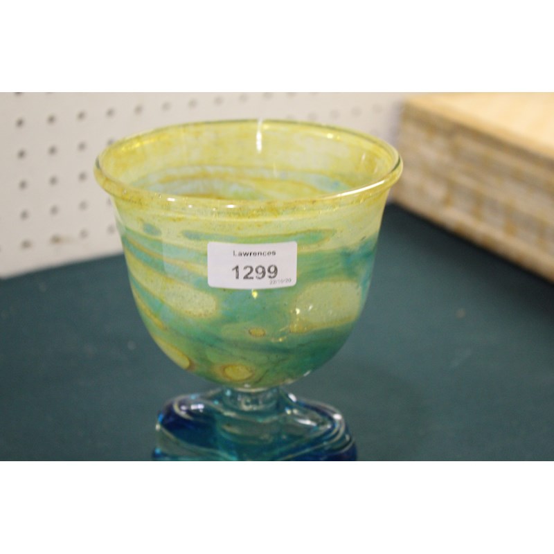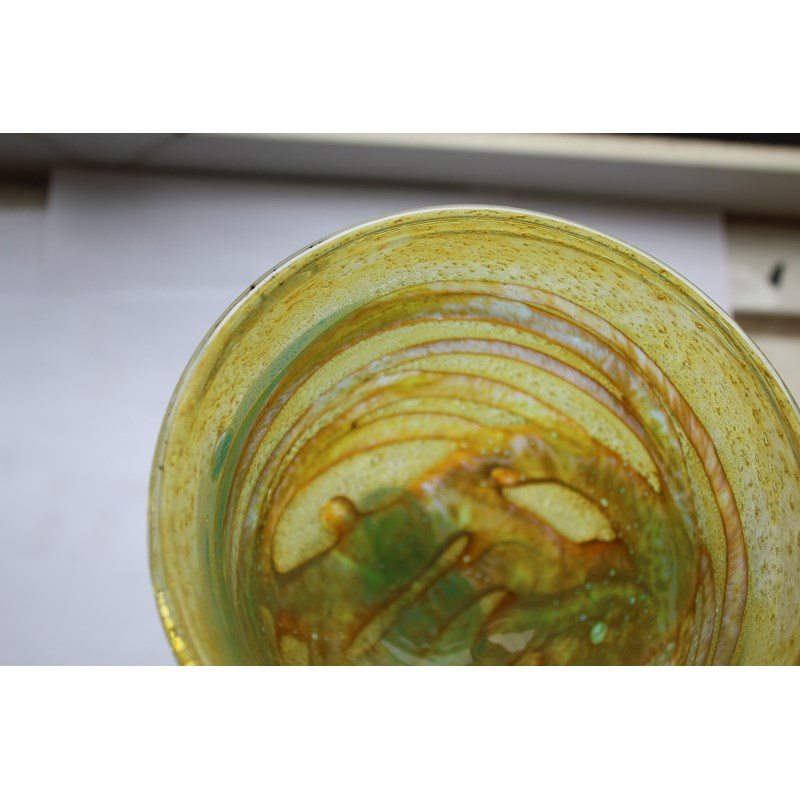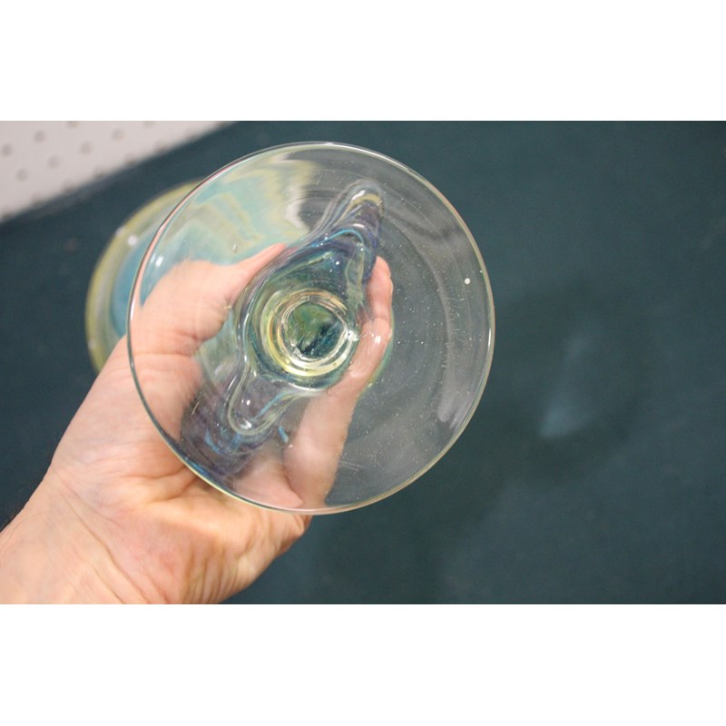 probably by Michael Harris, the large goblet with a swirling design to the bowl and raised on a single knop stem. Unmarked, 22cms high