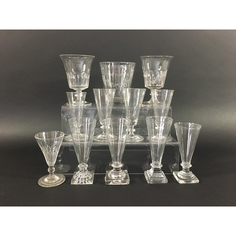 COLLECTION OF ENGLISH ALE GLASSES tumblers and others, late 18th and 19th century, including some with folded over feet (15)