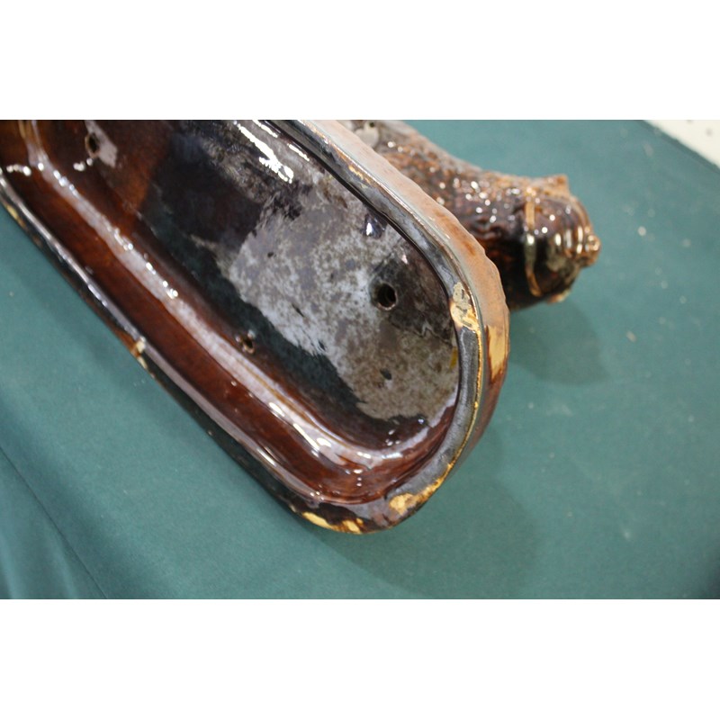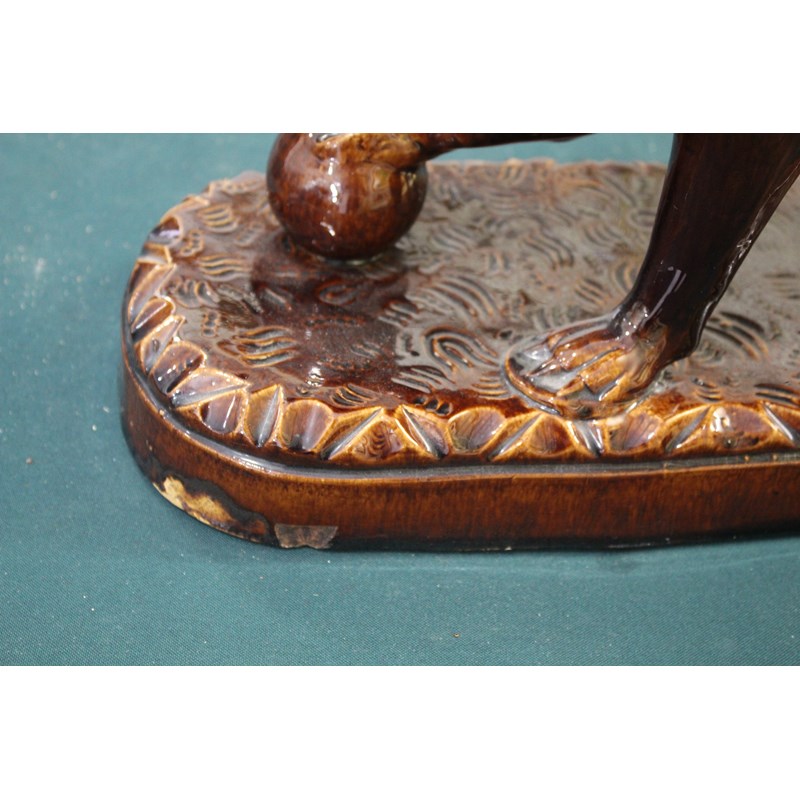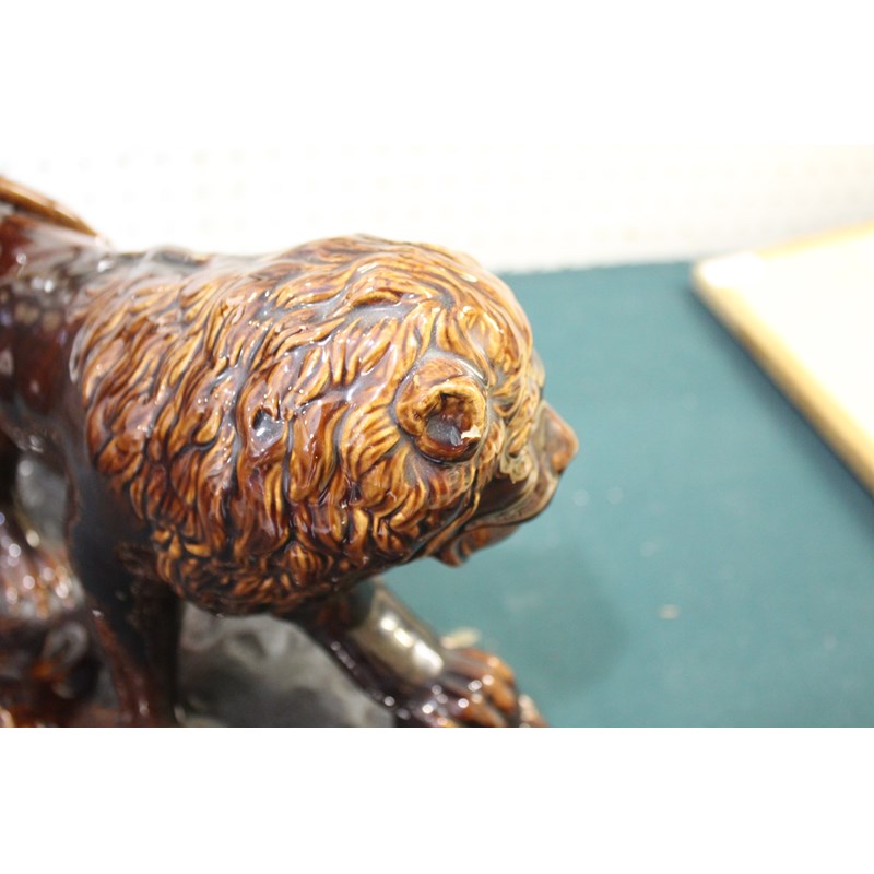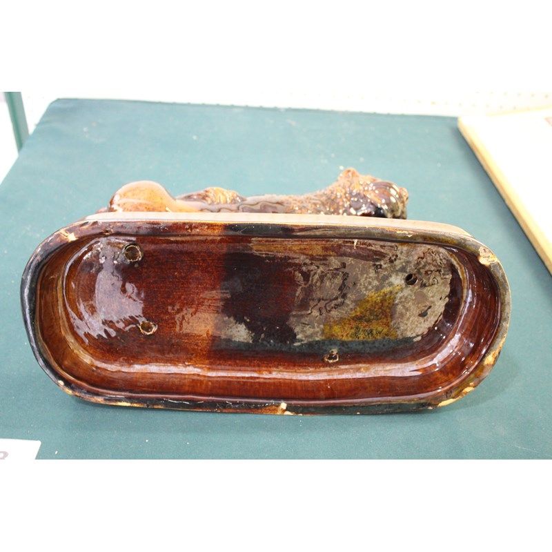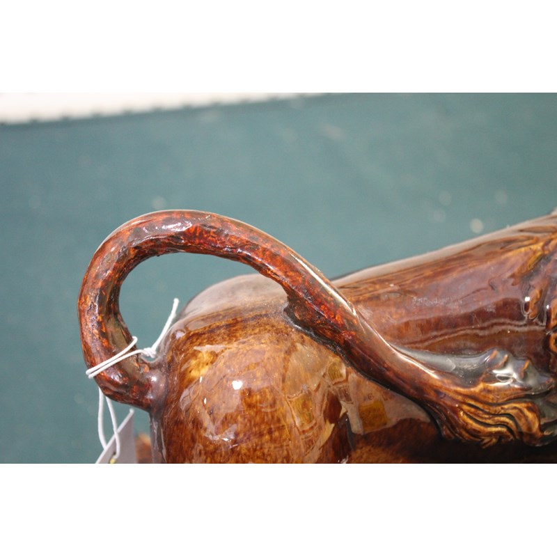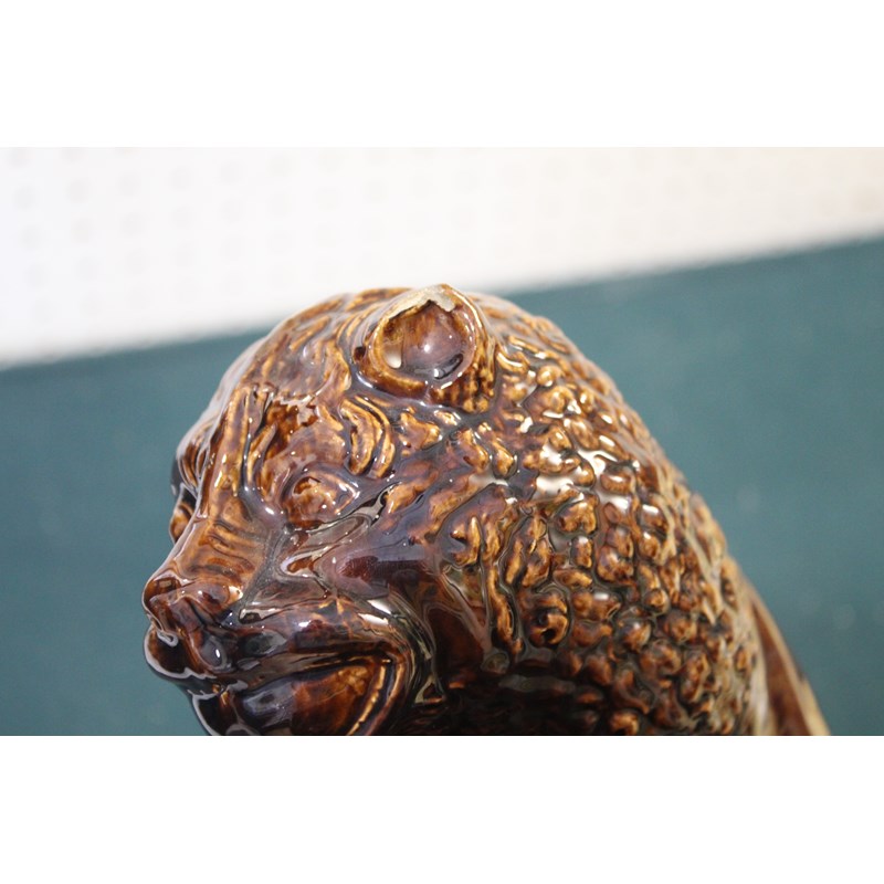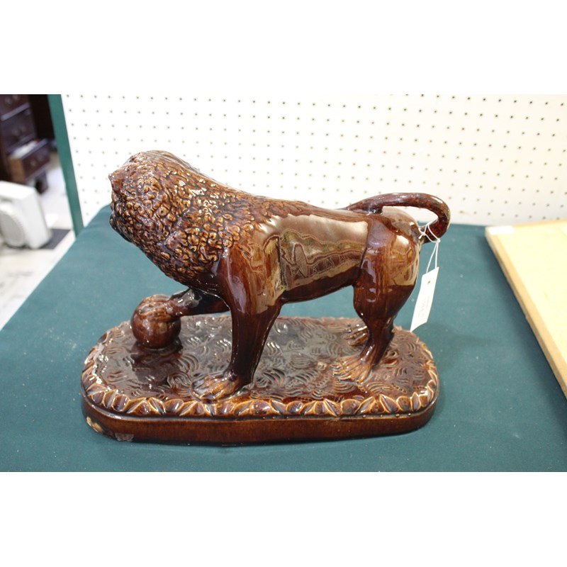 PAIR OF TREACLE GLAZED 'MEDICI' LIONS 19th century, facing left and right, on oval bases, height 27cm, width 40cm (2)
