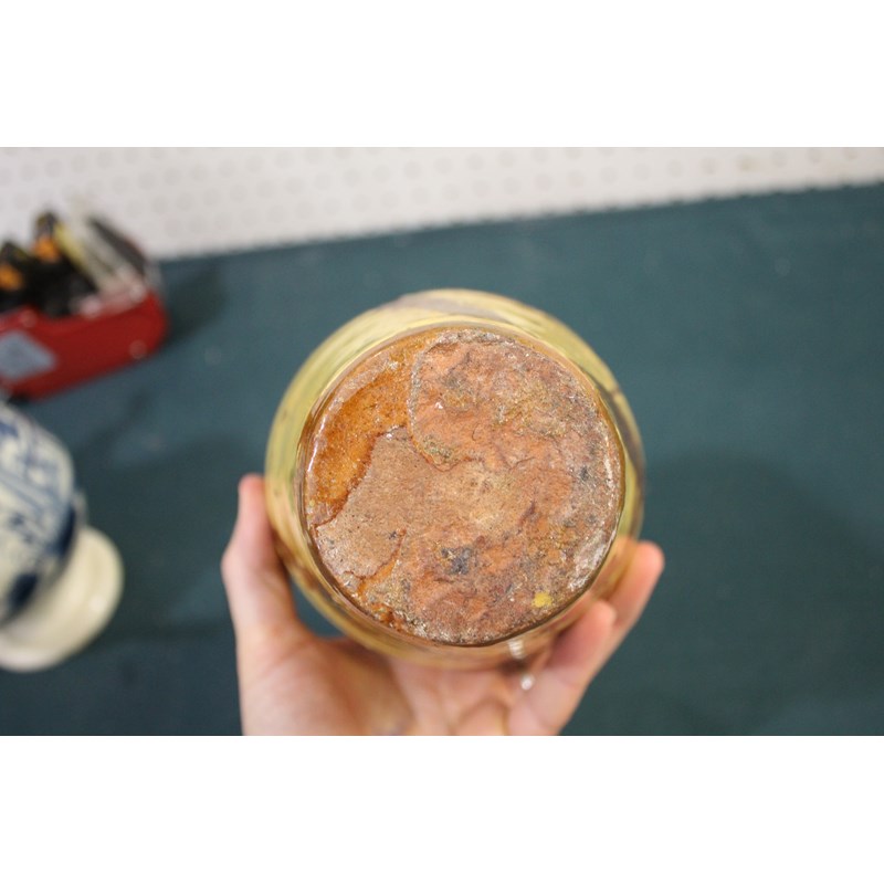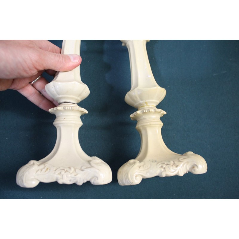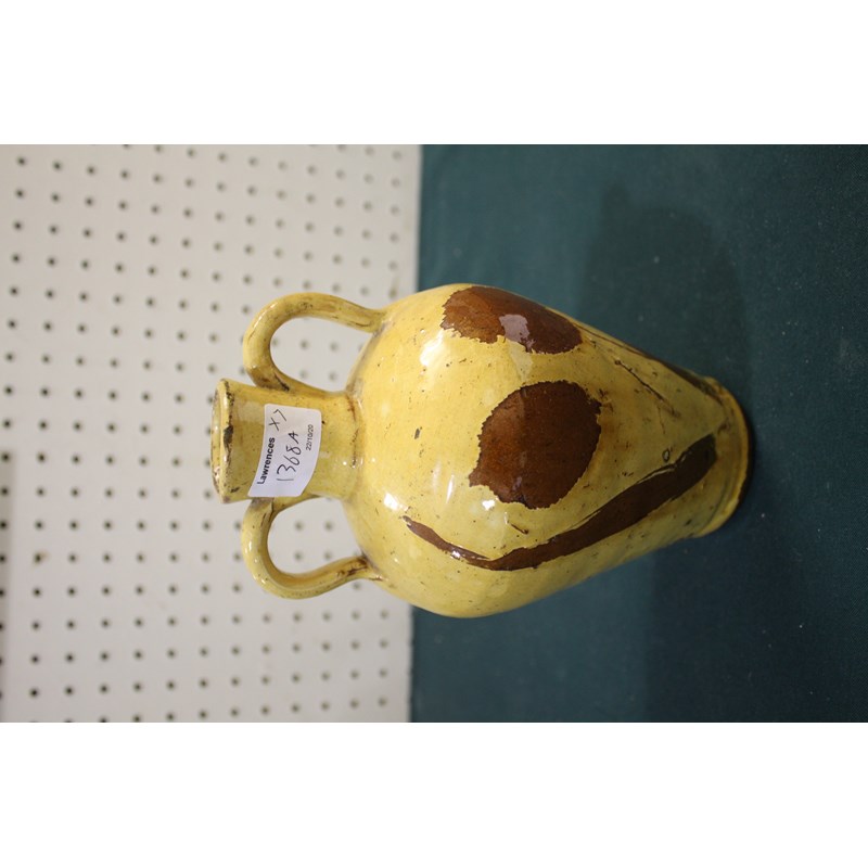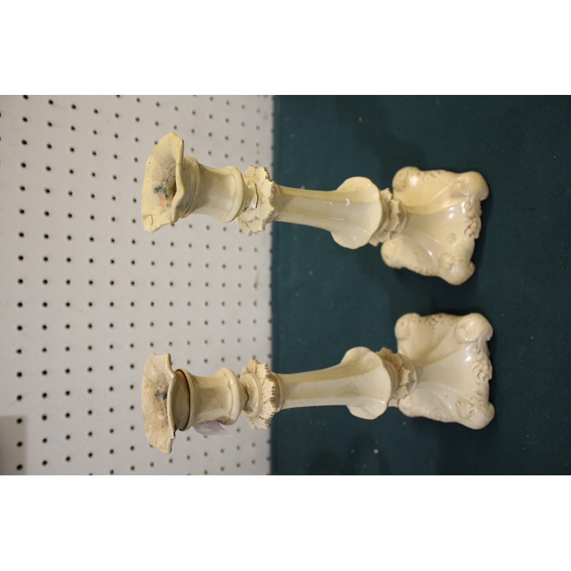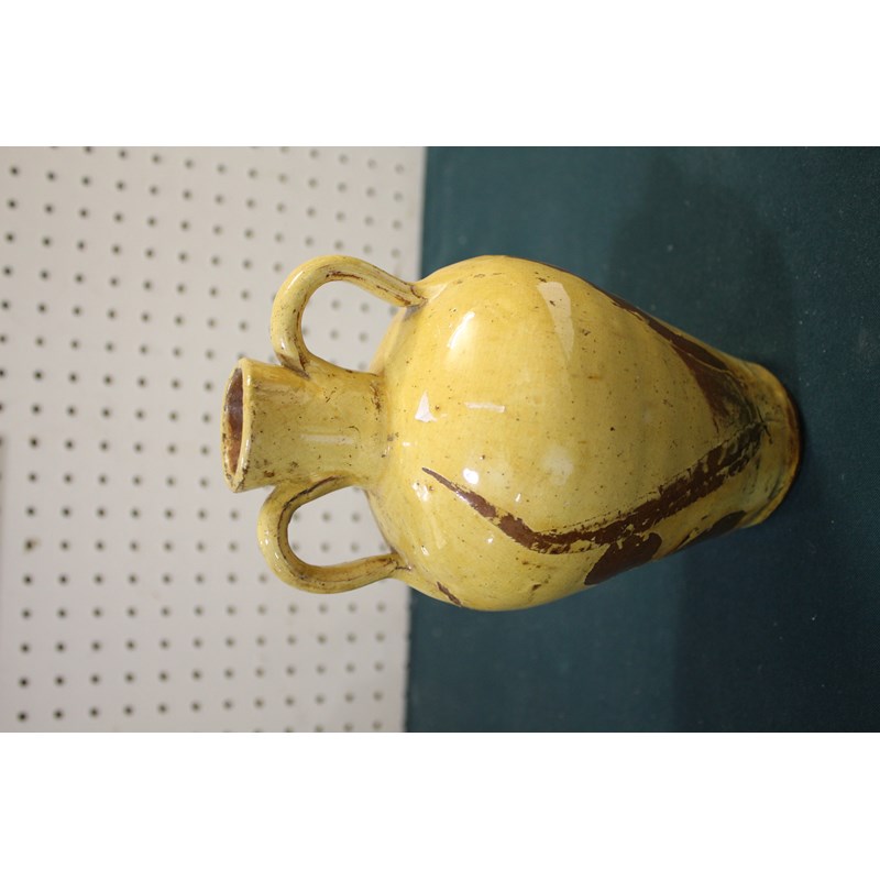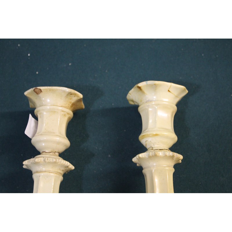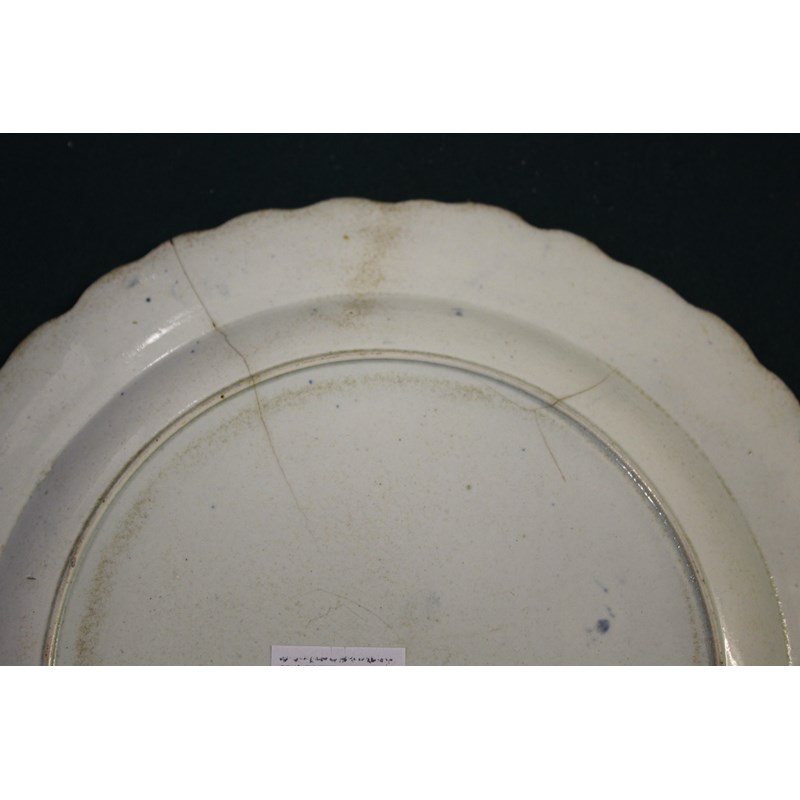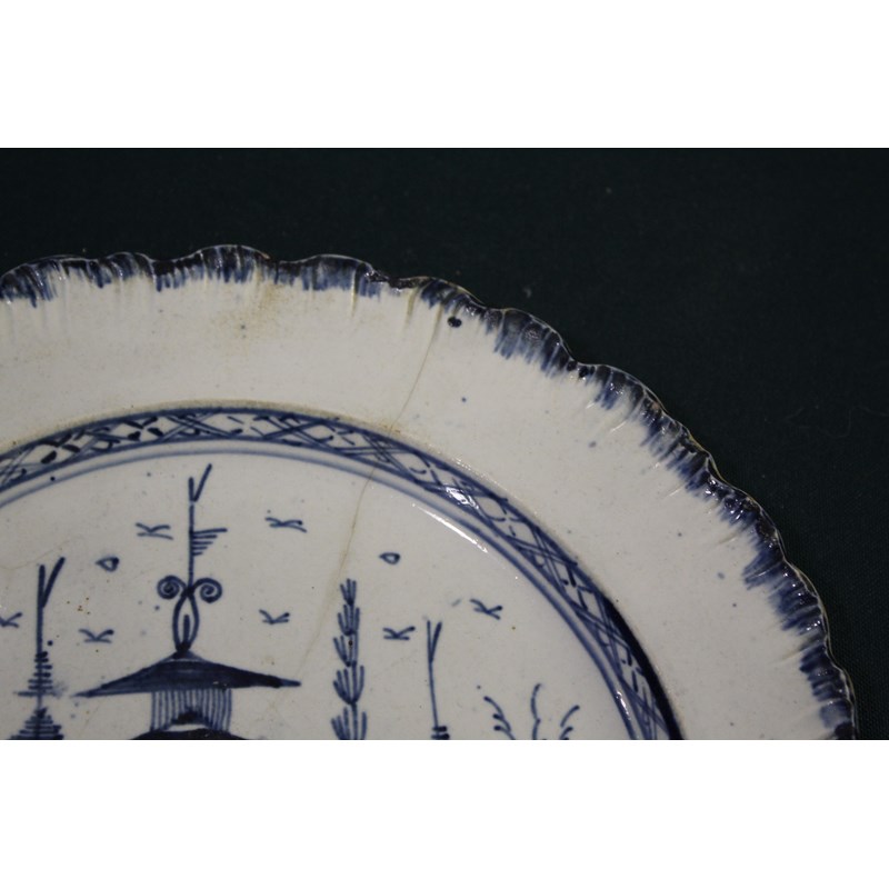 late 18th century, with brown sponged decoration, length 12cm; a creamware plate inscribed Henry Gittings; a pearlware plate with a chinoiserie scene; a pearlware coffee pot, a pair of creamware candlesticks and a slipware flagon (7)