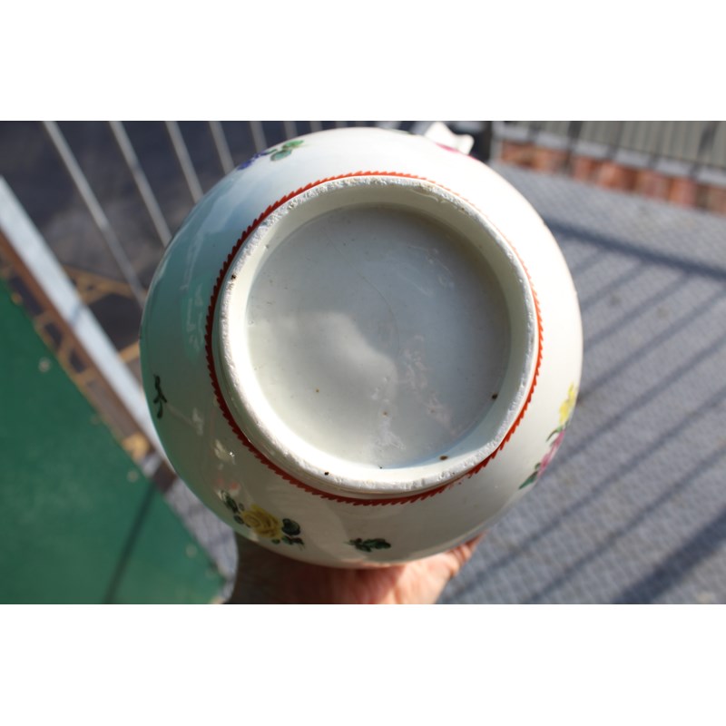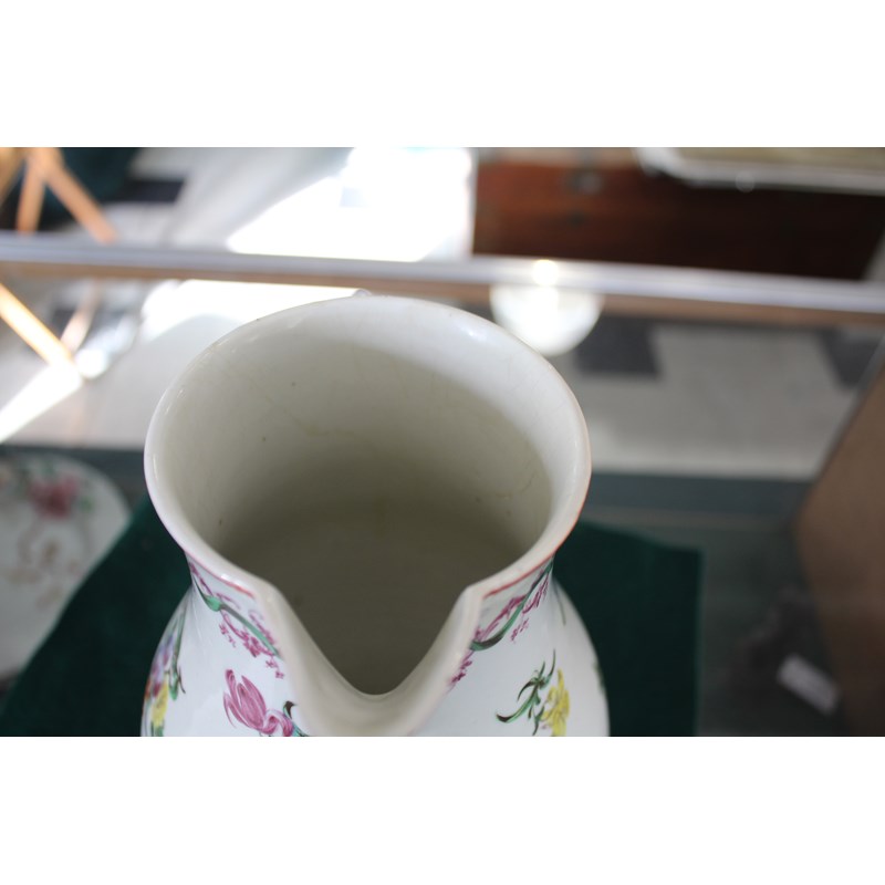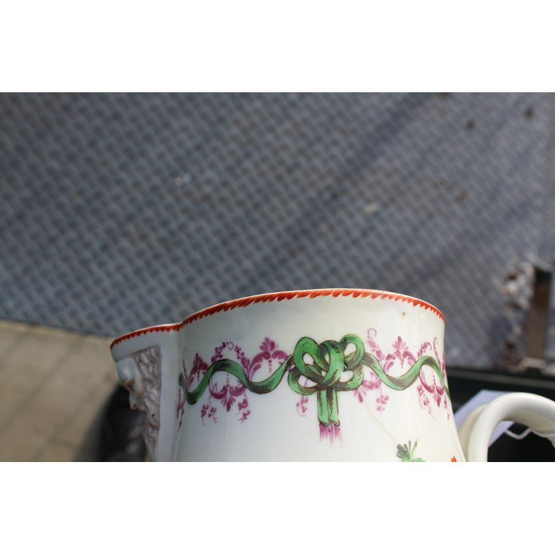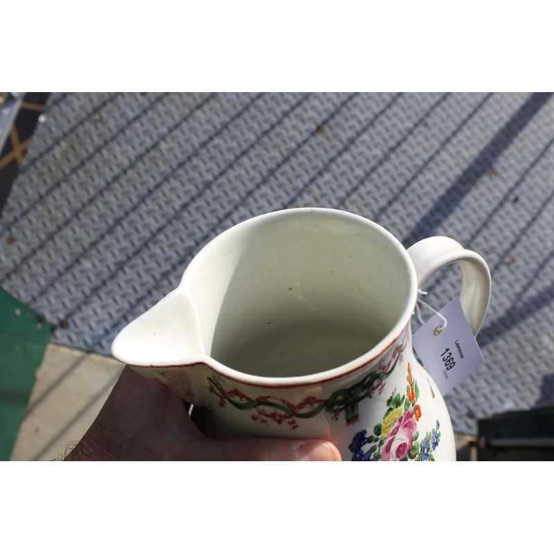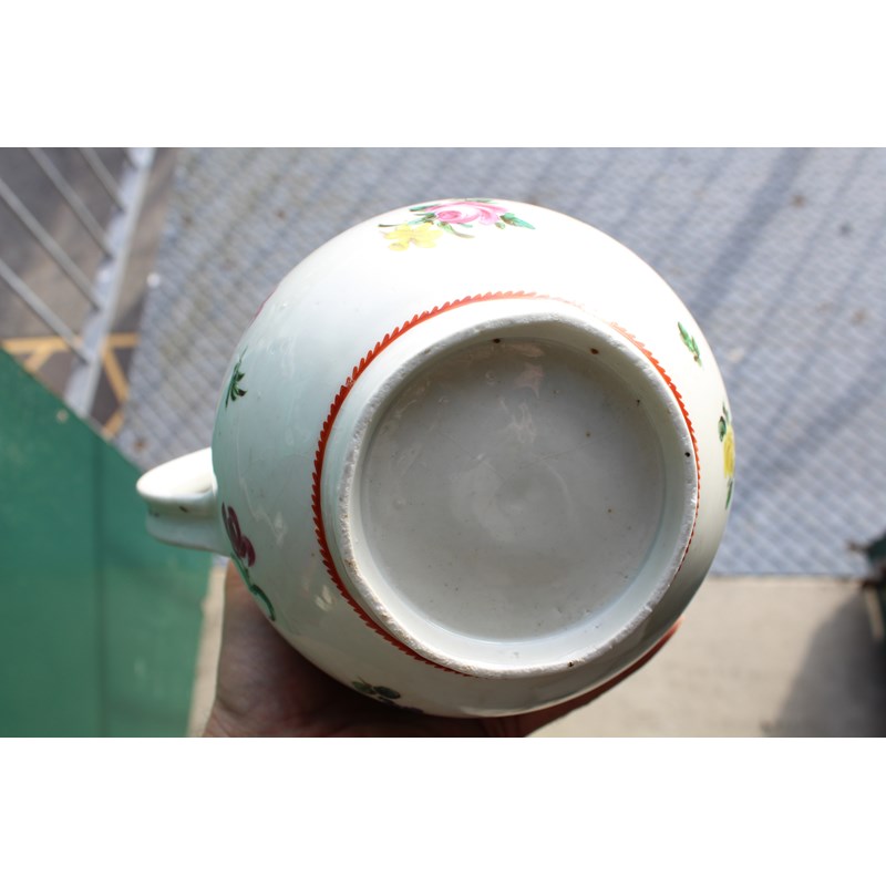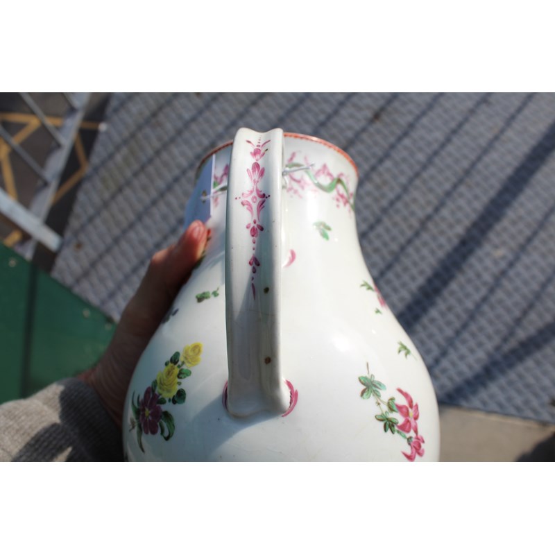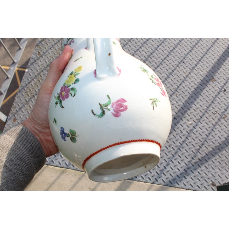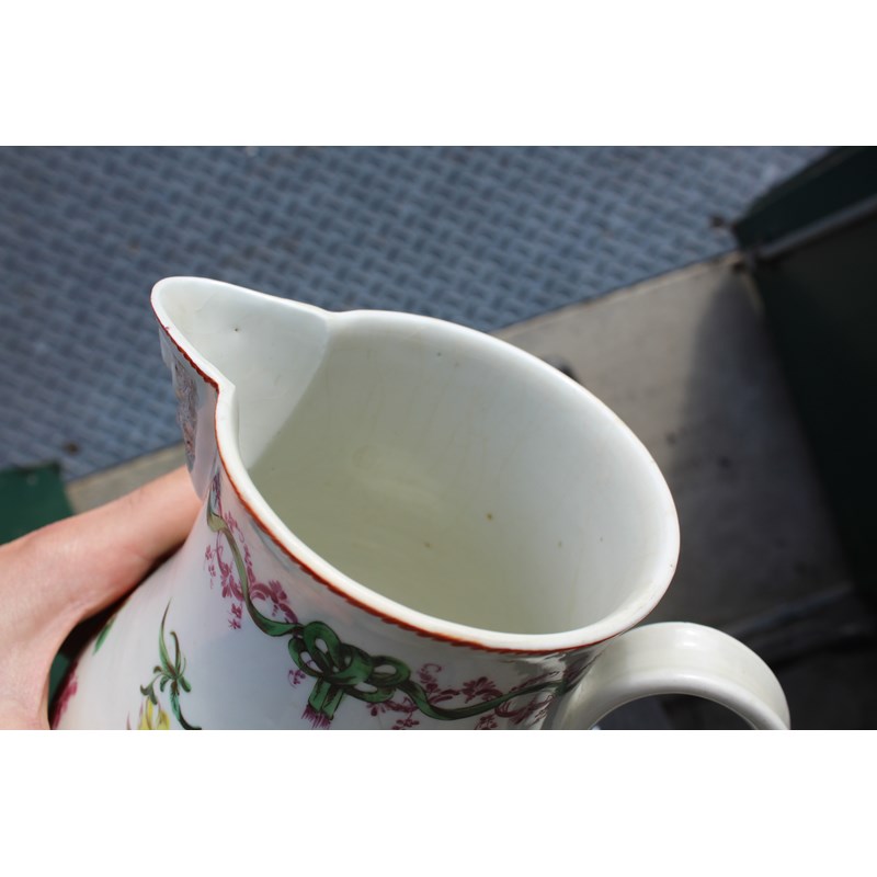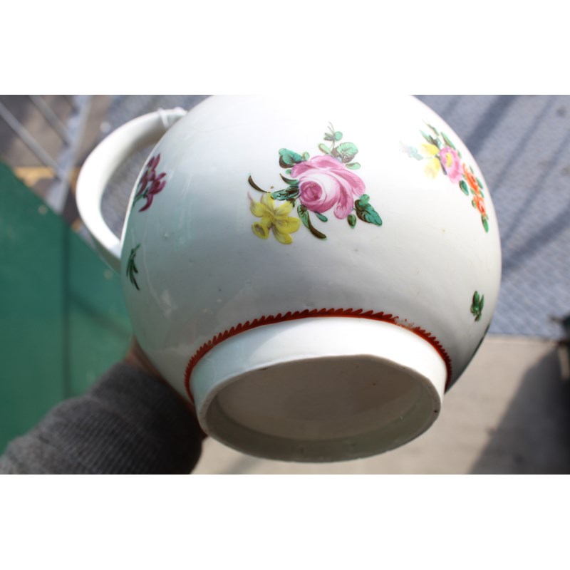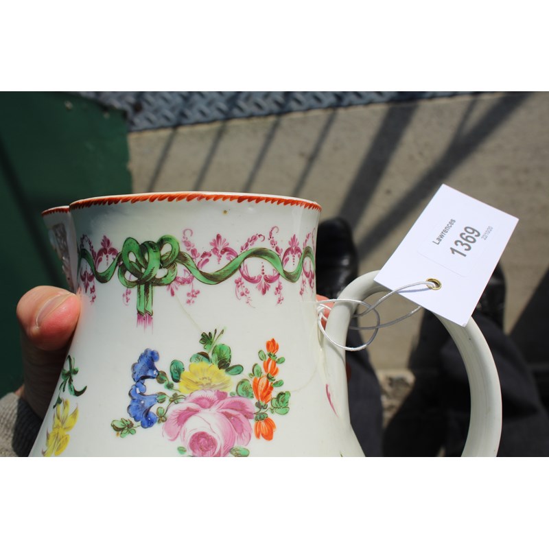 COOKWORTHY BRISTOL PORCELAIN MASK JUG painted with floral sprays beneath a moulded mask spout and floral ribbon to the rim, height 22cm
