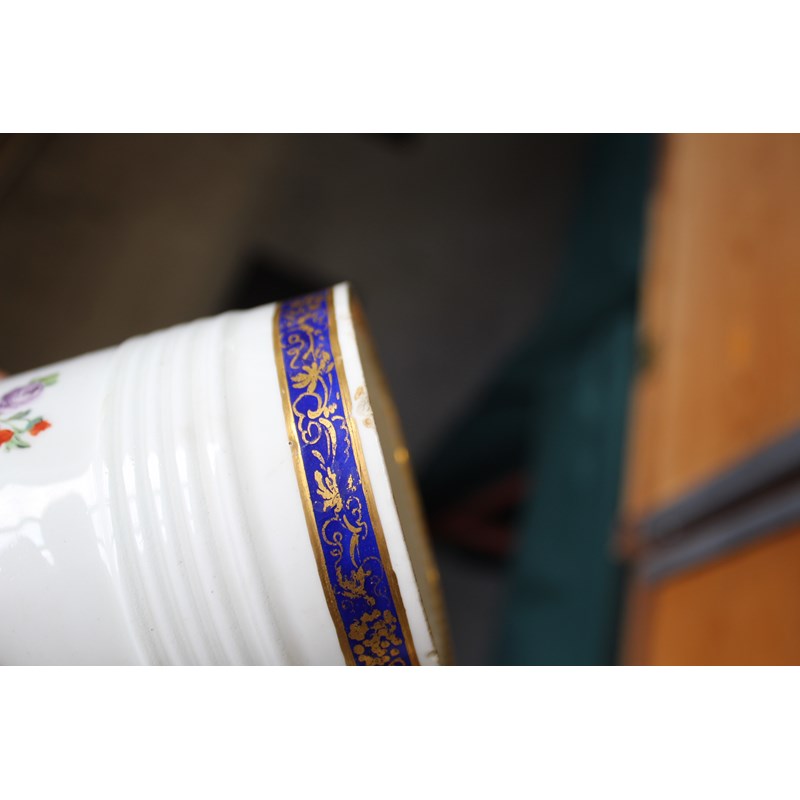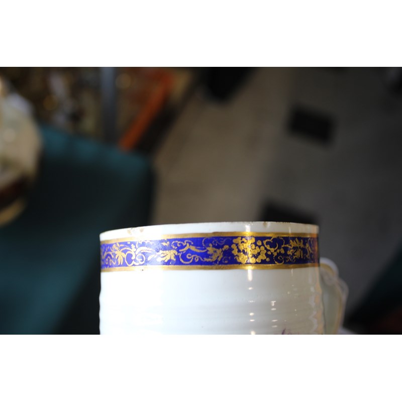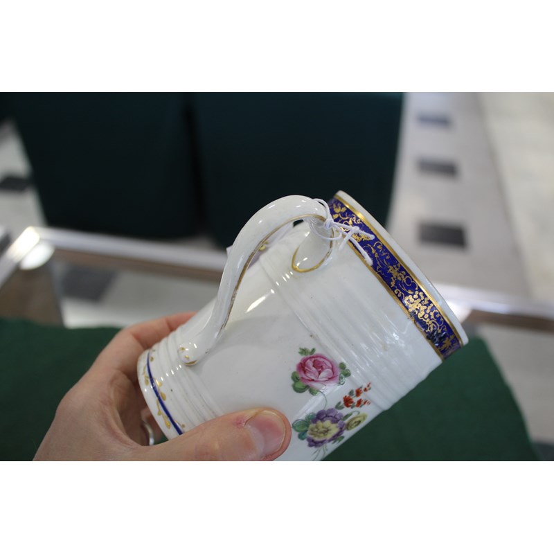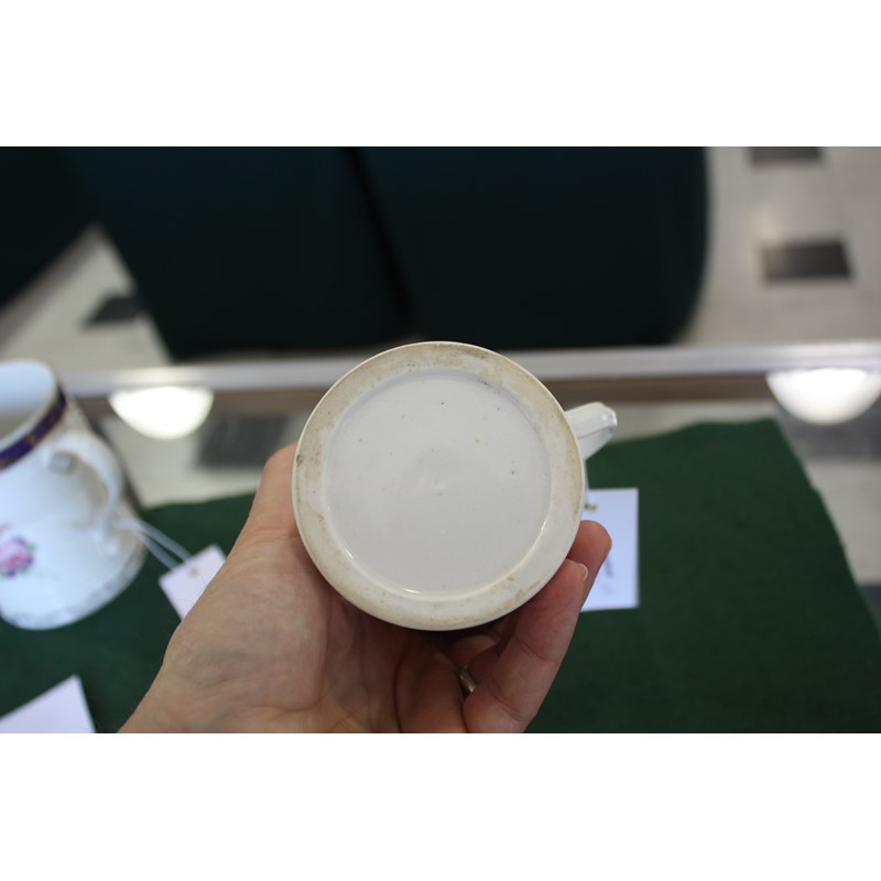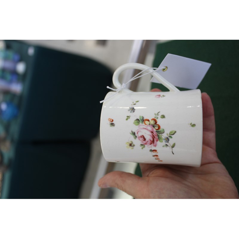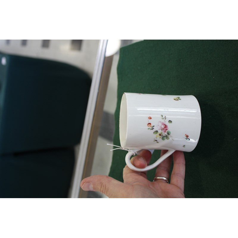 DERBY GLASS BOTTOMED MUG painted with floral sprays between blue and gilt rim and foot, height 12cm; together with another Derby mug painted with Withers' style flowers, 9cm (2) Provenance: glass bottomed mug with Foden Collection sticker, number 177