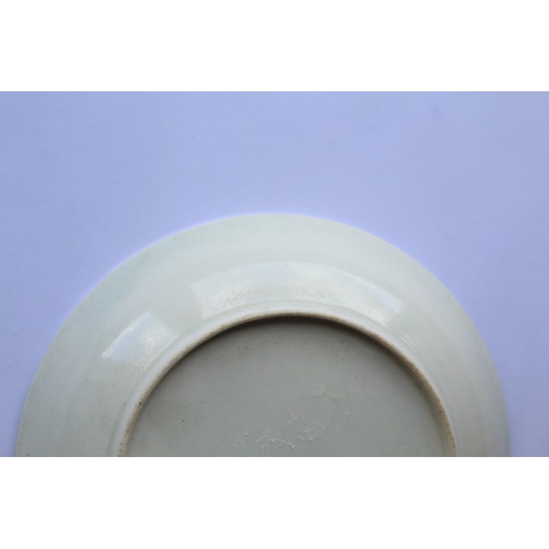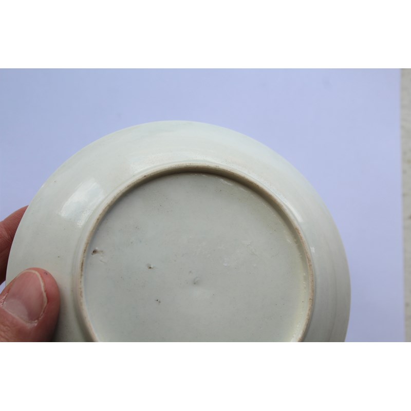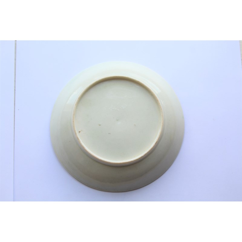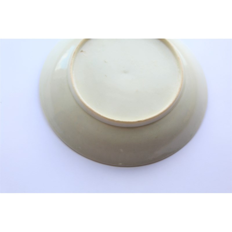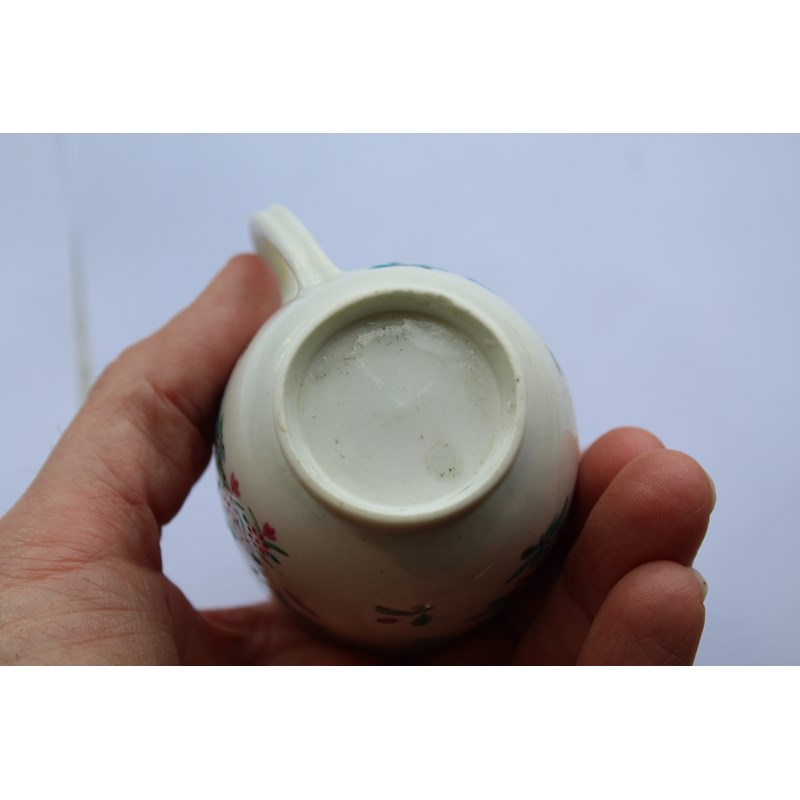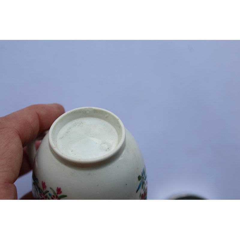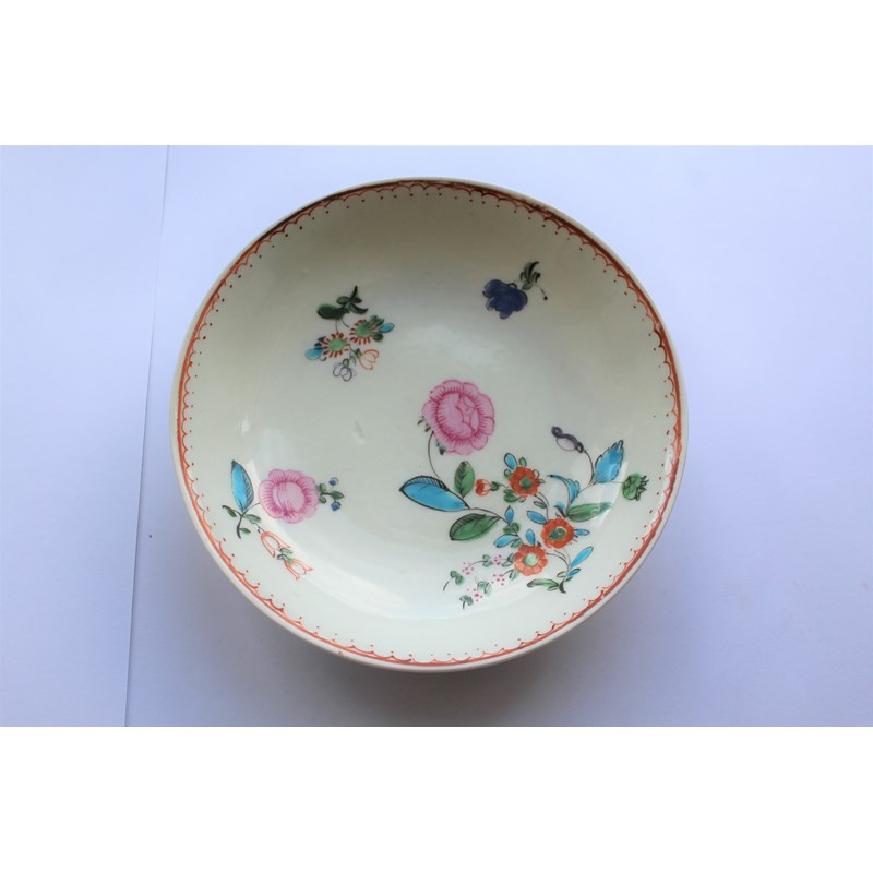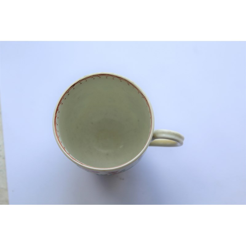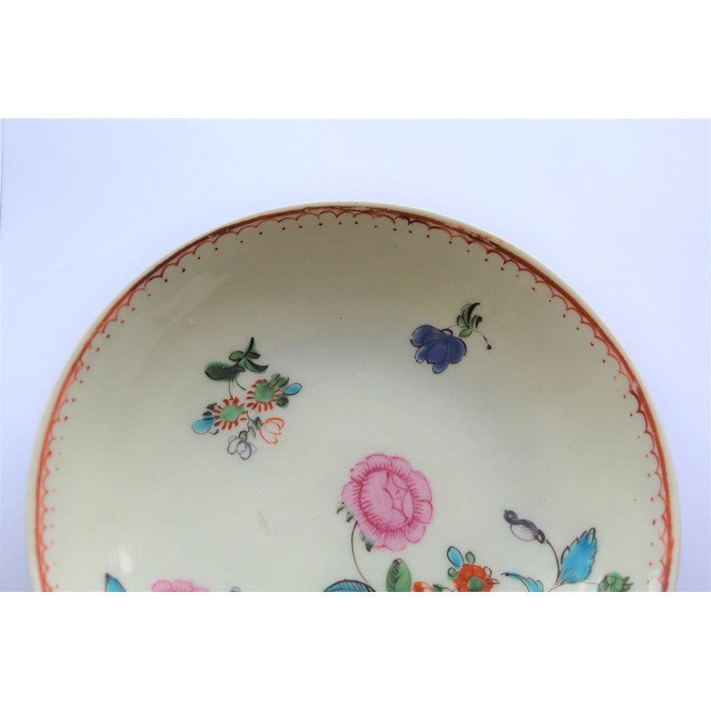 WORCESTER COFFEE CUP AND SAUCER circa 1765-70, with painted and enamelled floral sprays inside in iron red border, diameter 12cm