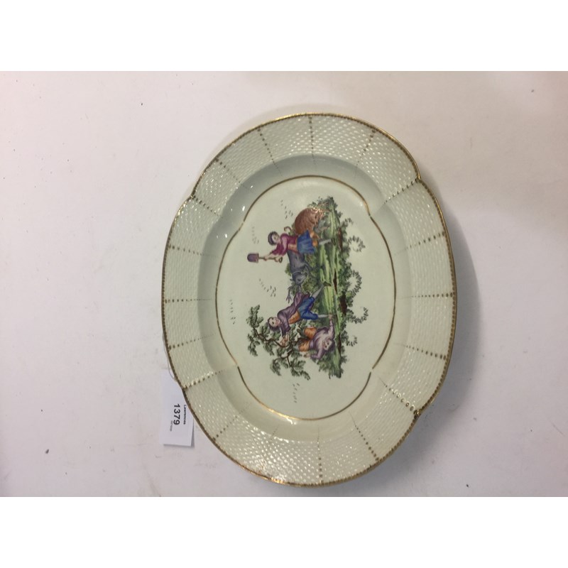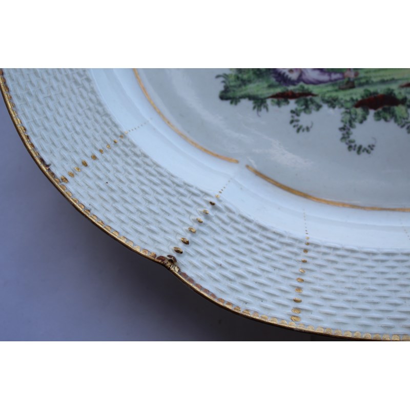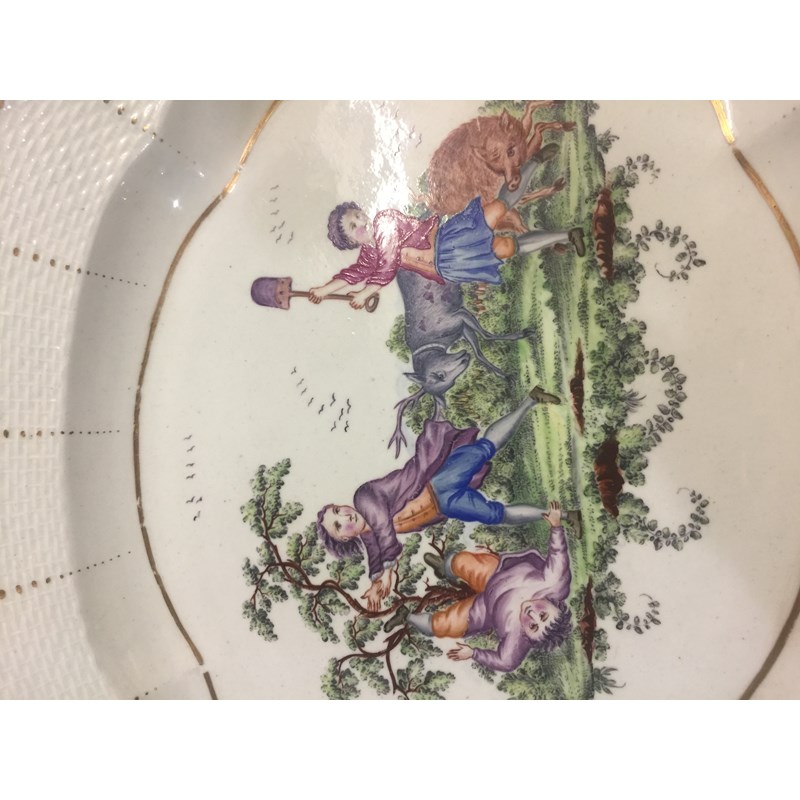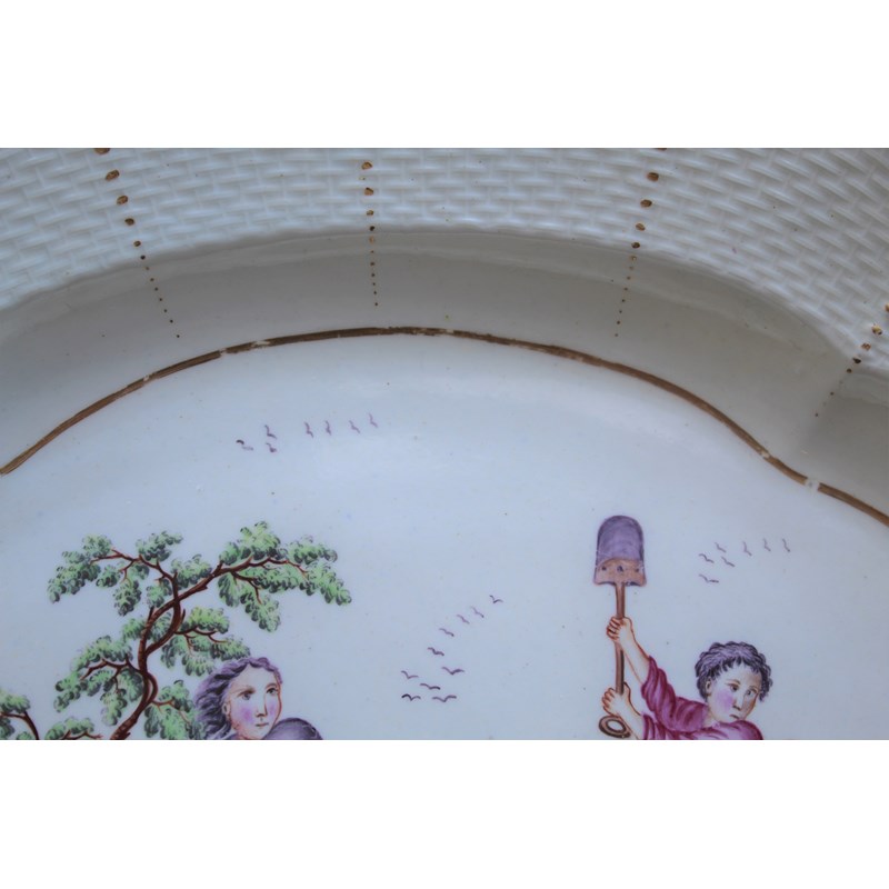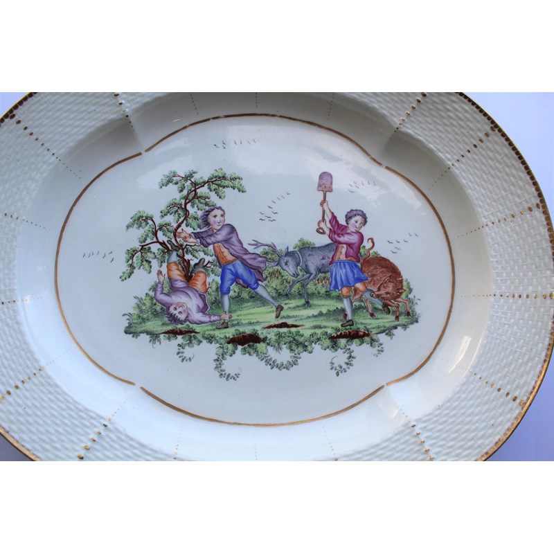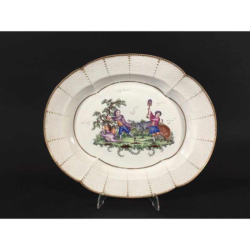 circa 1765, painted in the manner of Duvivier or O'Neale with children, a boar and a deer inside a basket weave border, length 29.5cm