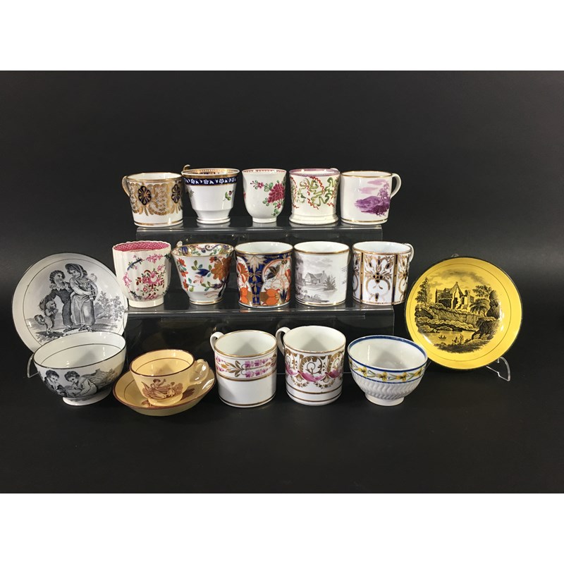 COLLECTION OF ENGLISH PORCELAIN AND PEARLWARE CUPS late 18th and 19th century, including Derby, Spode, Liverpool and others (16)