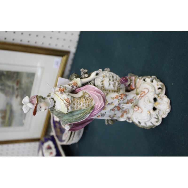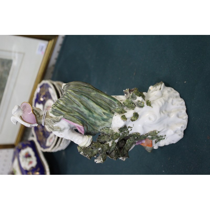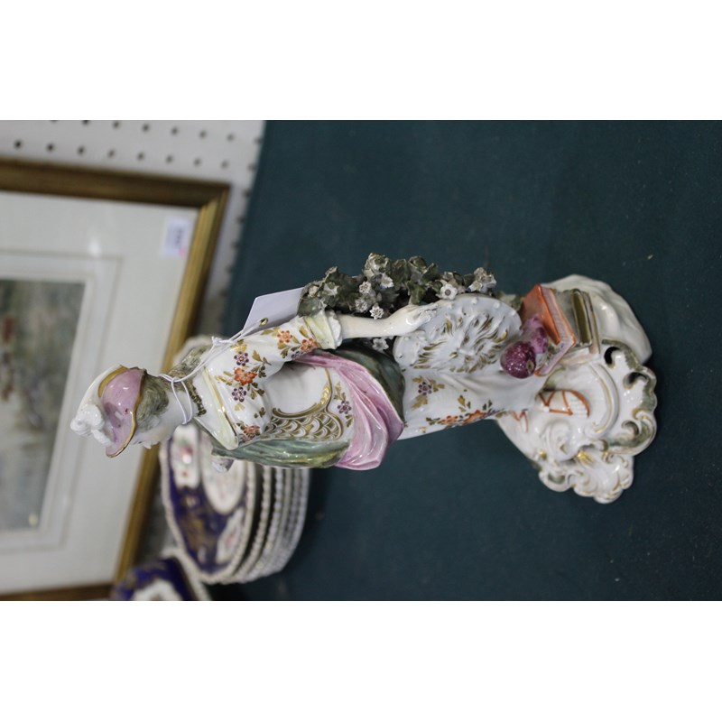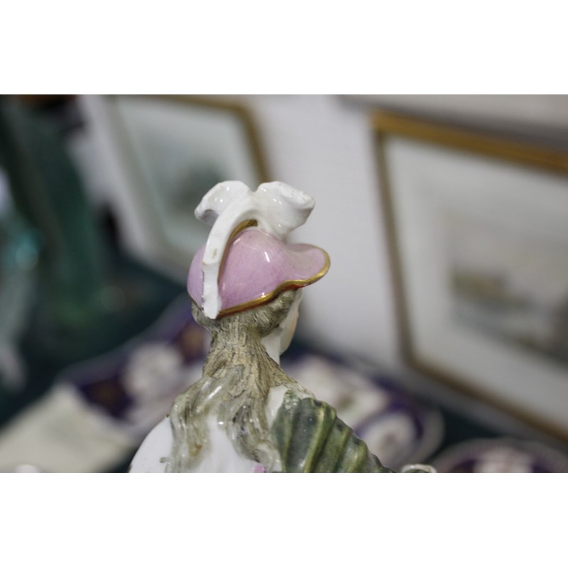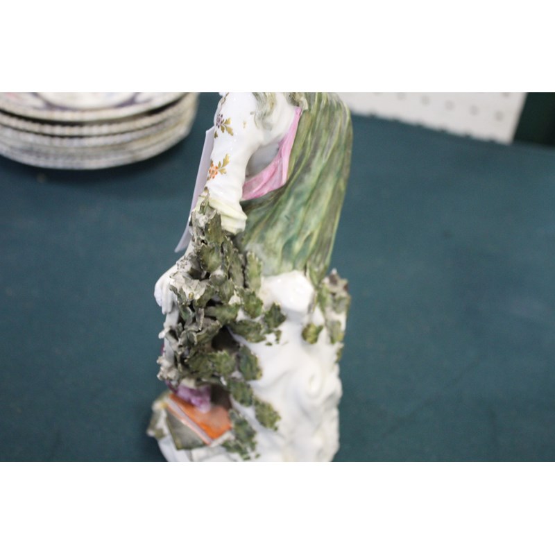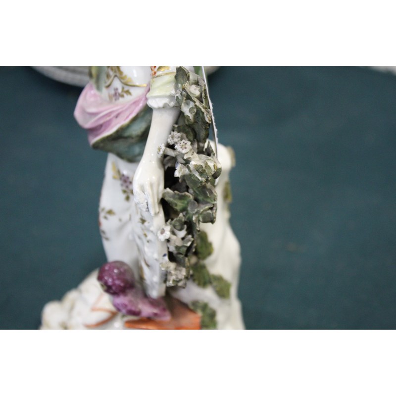 DERBY PATCH MARK FIGURE OF ATHENA late 18th century, she standing by her shield, an old perched on a stack of books, height 27cm