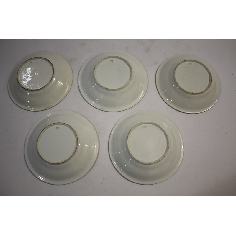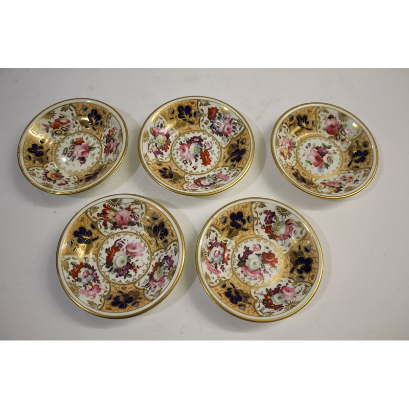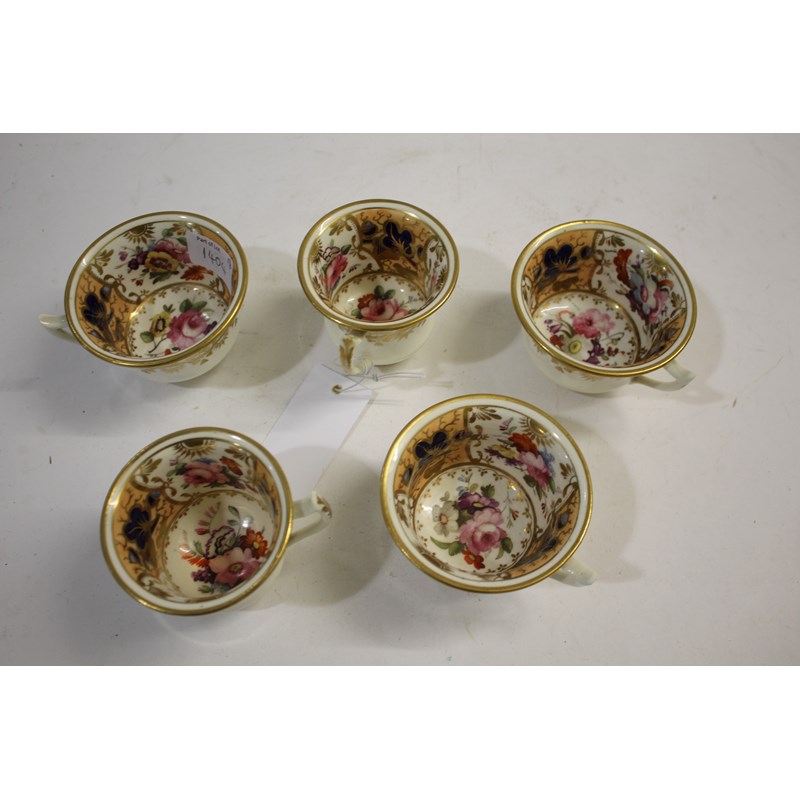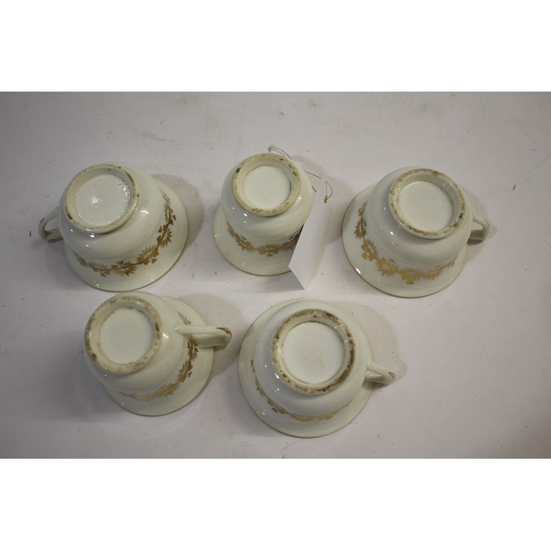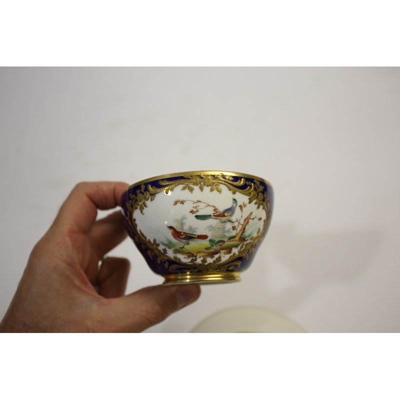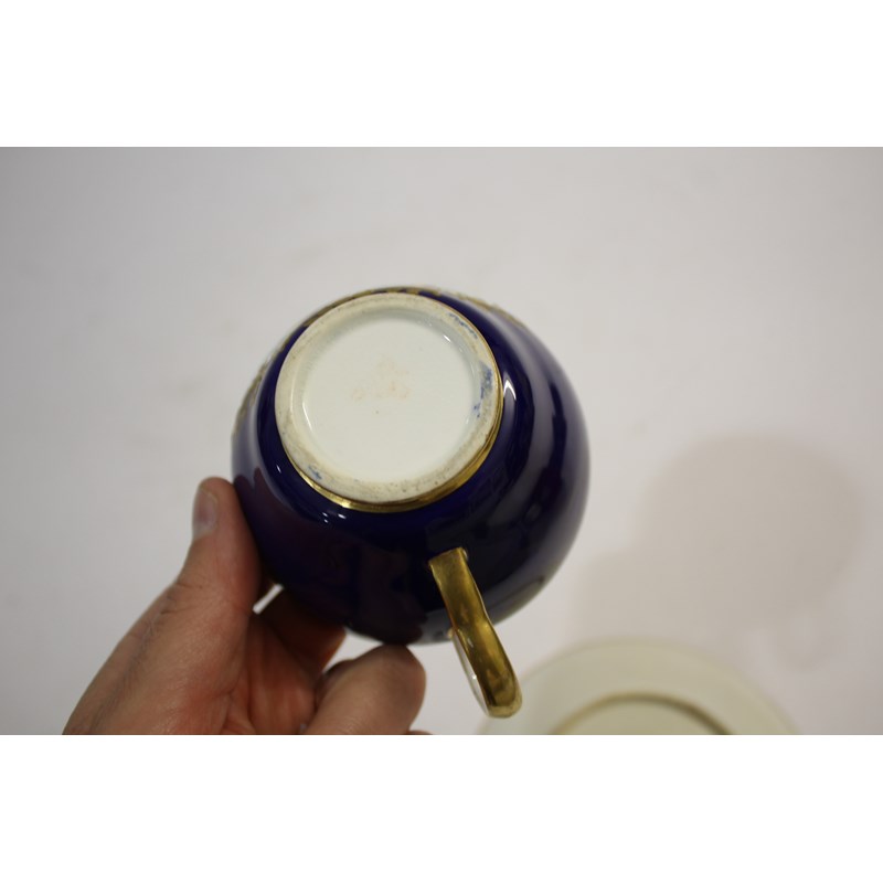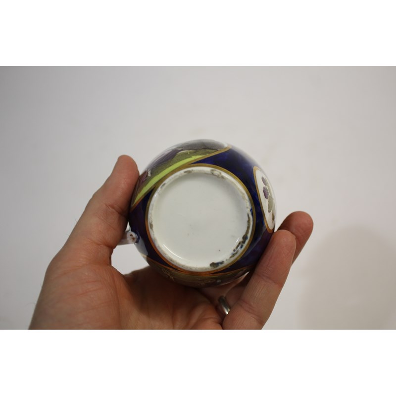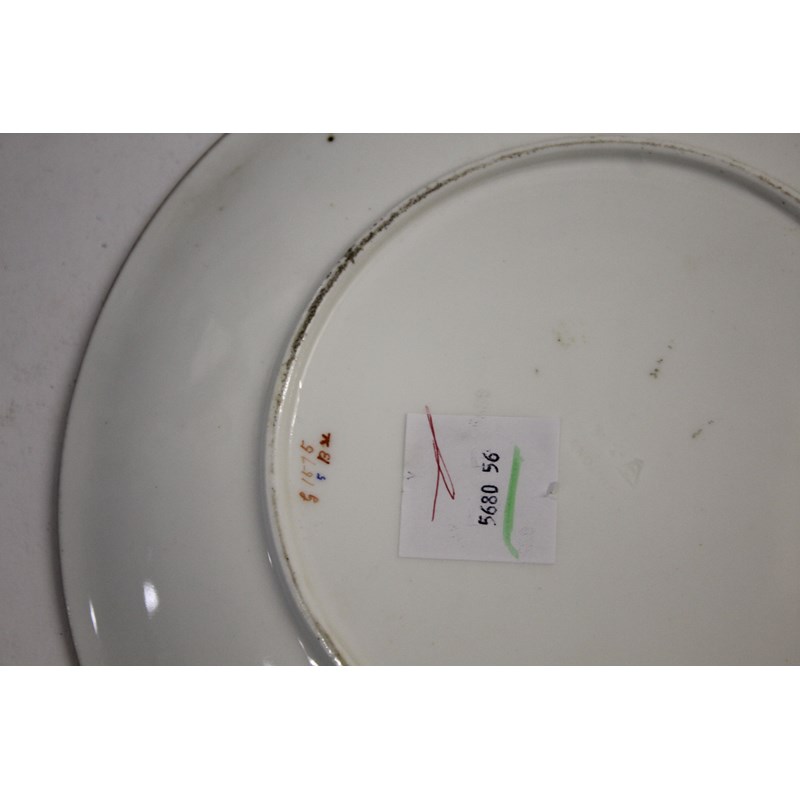 date cypher for 1878, outside painted with landscapes inside a turquoise and tooled gilt border, impressed and painted marks, diameter 23cm; together with a teacup and saucer printed and painted with a mother and child on a rocking horse and other scenes and various English porcelain cups and saucers (parcel)