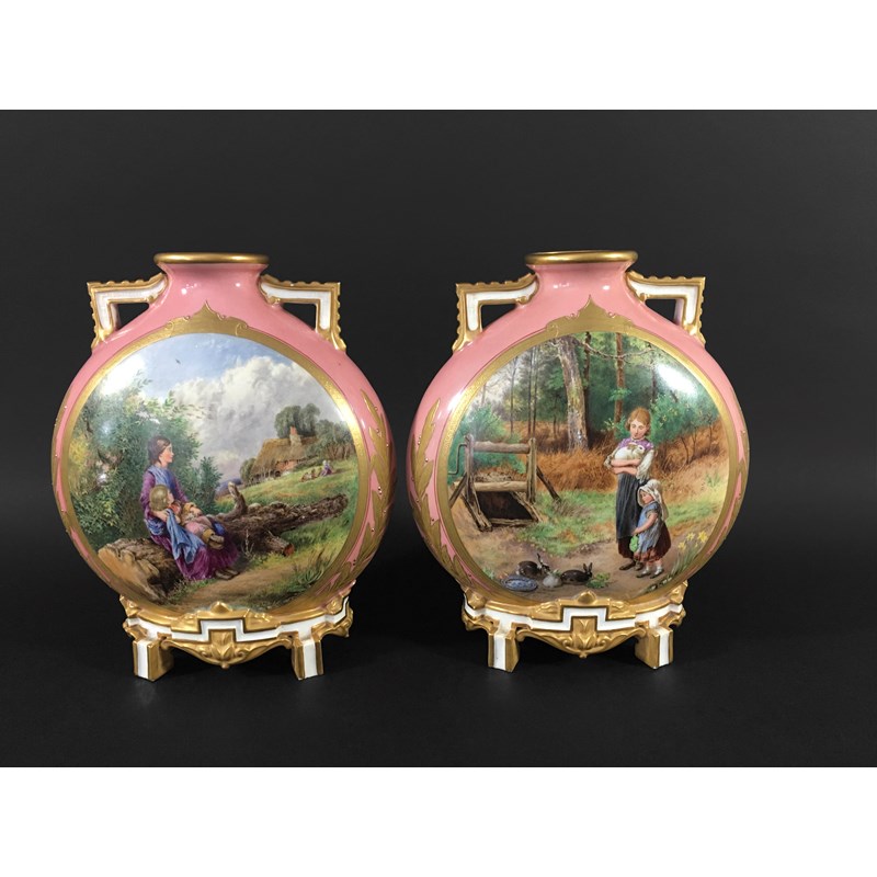 PAIR OF ROYAL WORCESTER MOON FLASK VASES