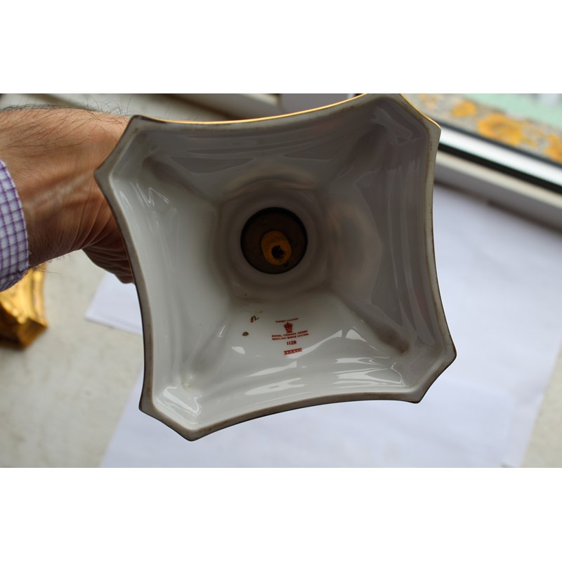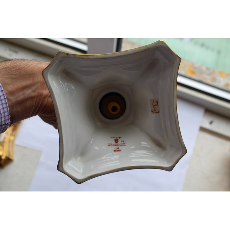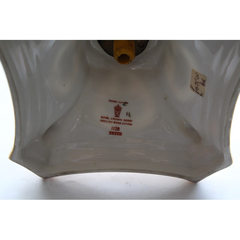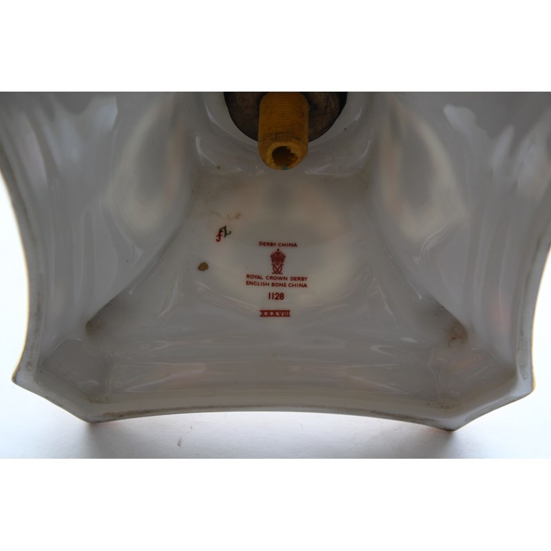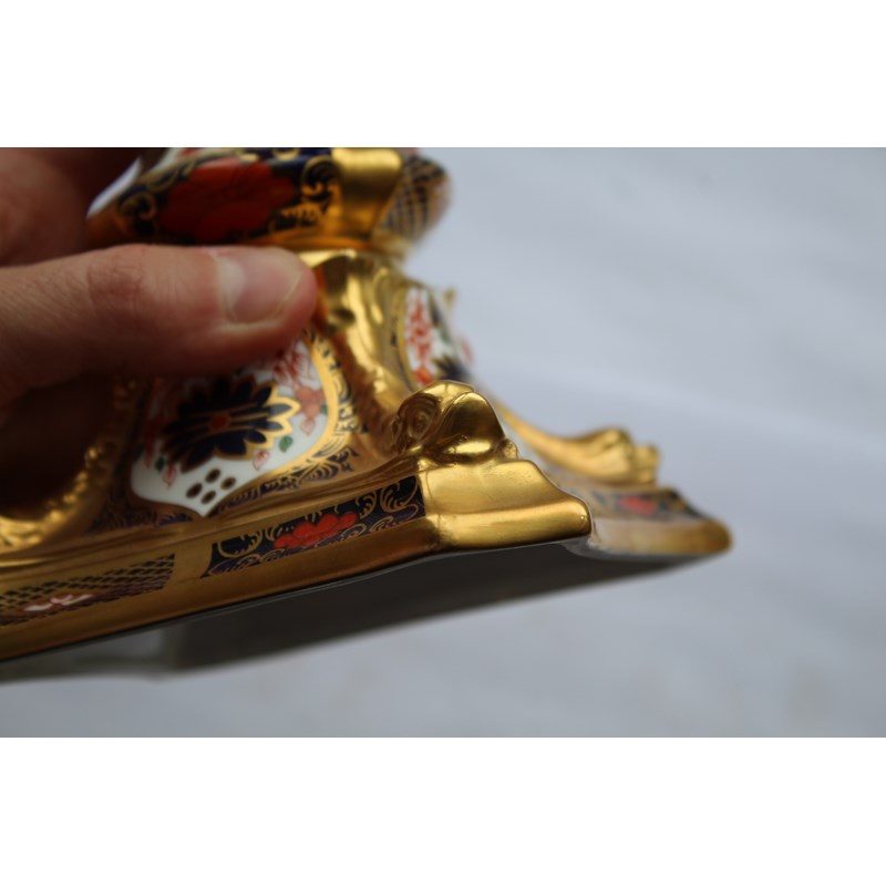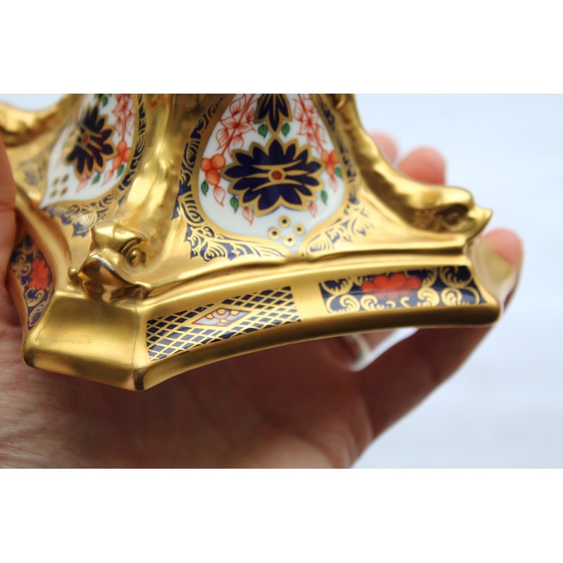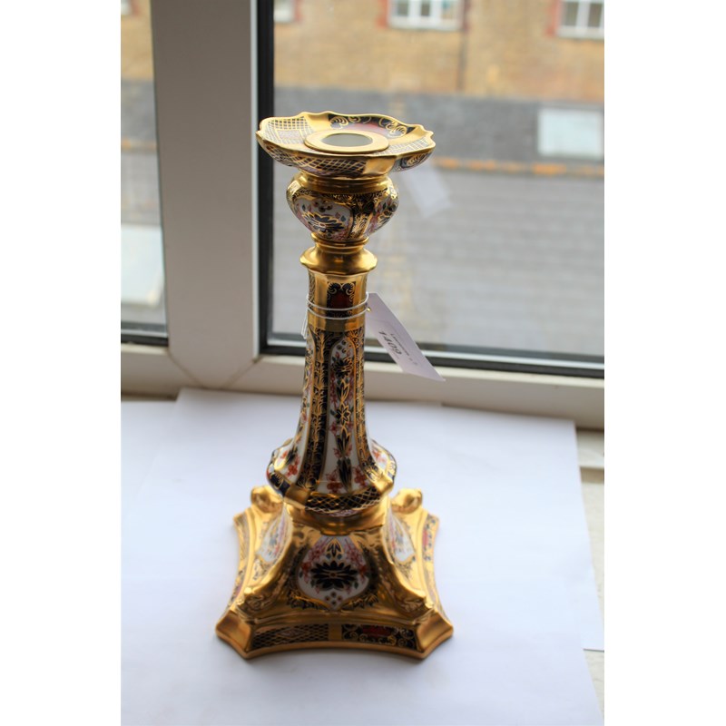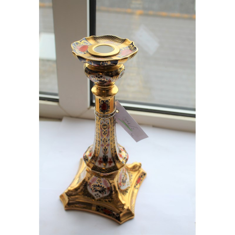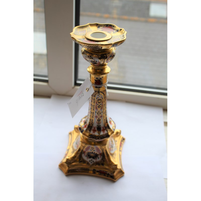 PAIR OF ROYAL CROWN DERBY CANDLESTICKS date code for 1975, in Imari pattern 1128, iron red marks, height 26cm (2)