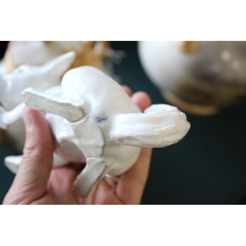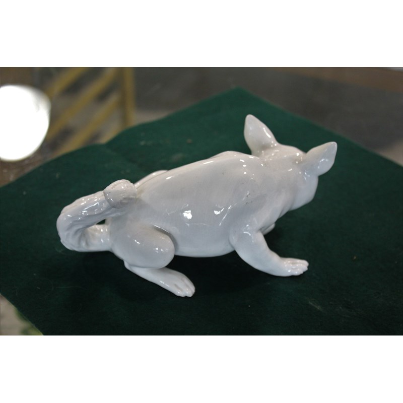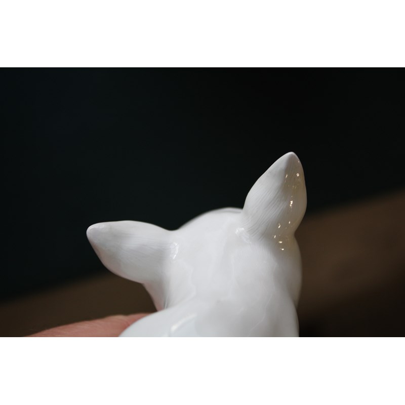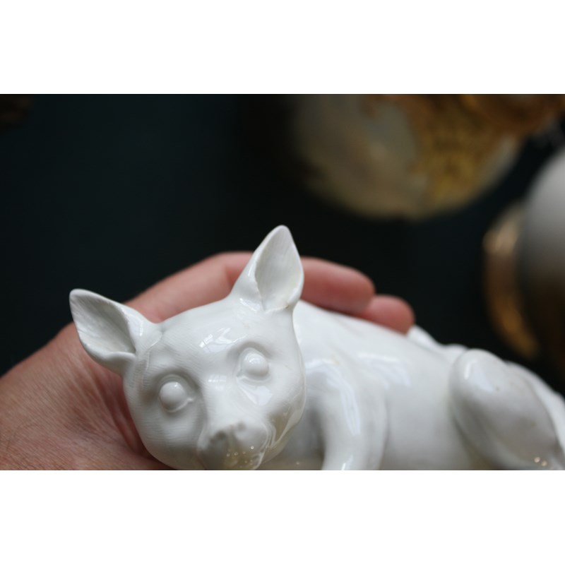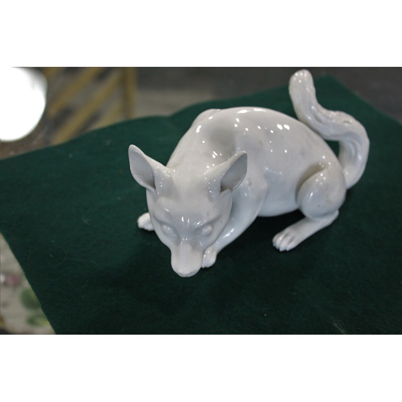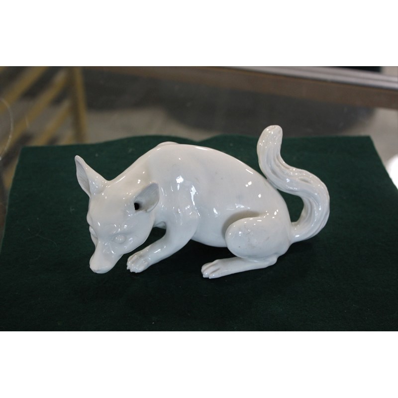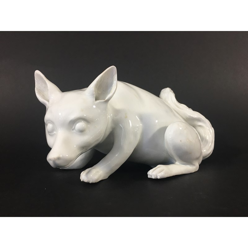 MEISSEN FOX probably later 18th century, crouching, in white, blue crossed sword marks to edge, length 18cm