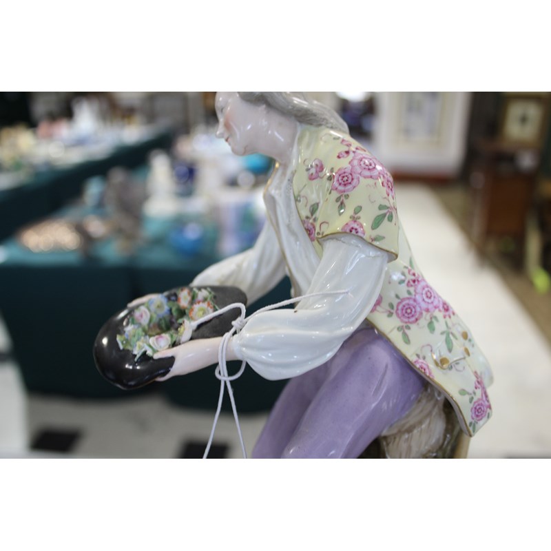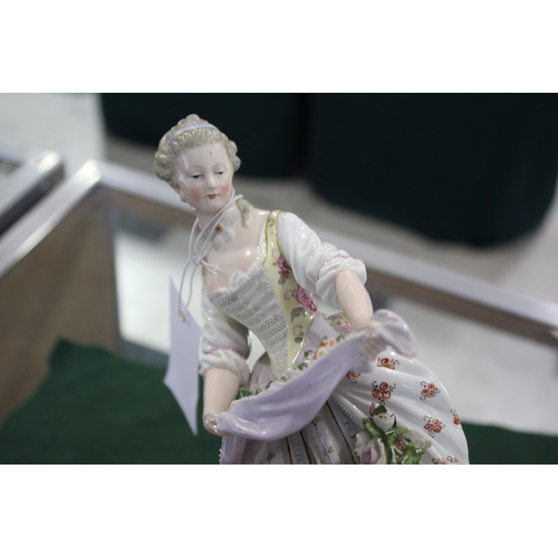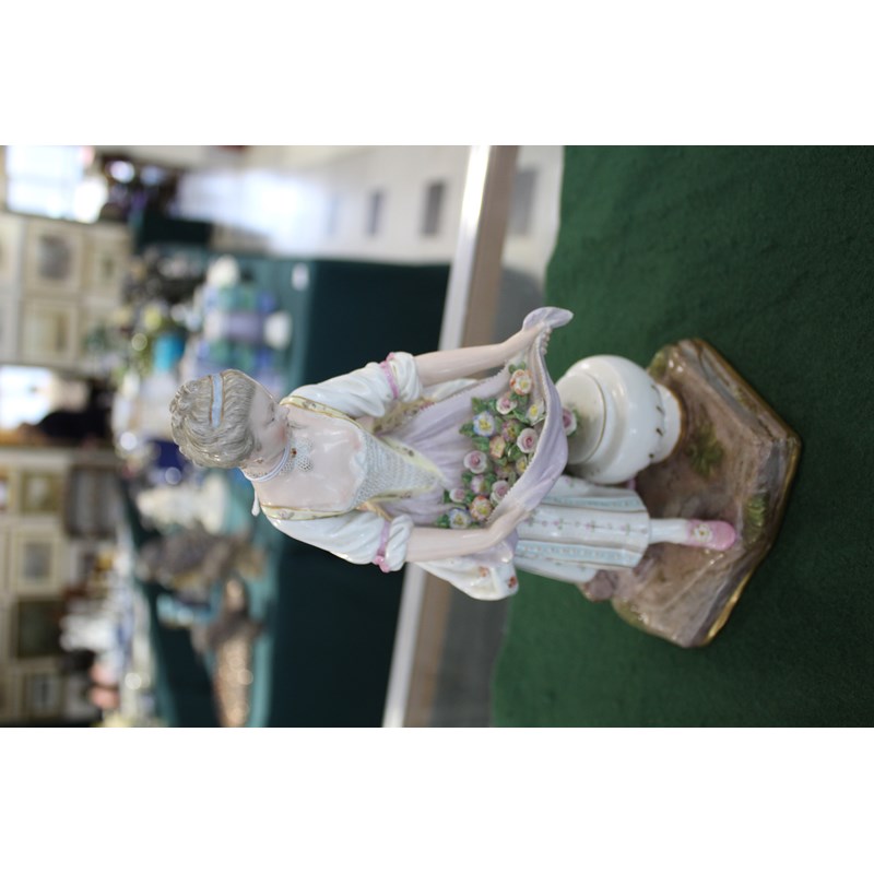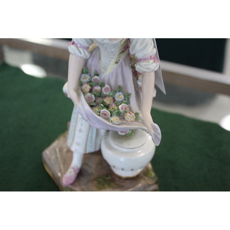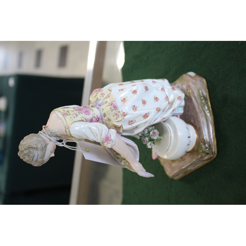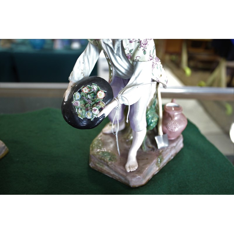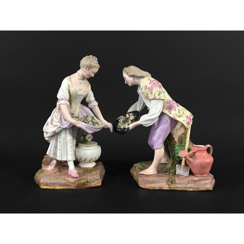 PAIR OF MEISSEN FIGURES late 19th or early 20th century, modelled as a rustic couple with a hat and basket of flowers, incised and blue crossed sword marks, height 22cm (2)