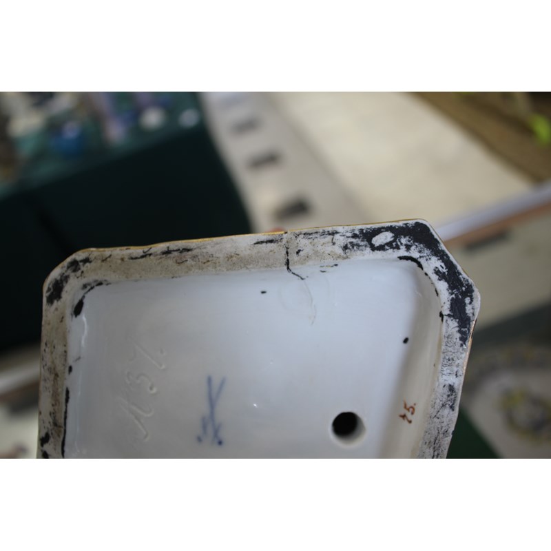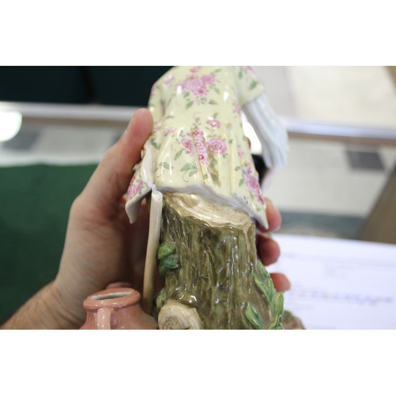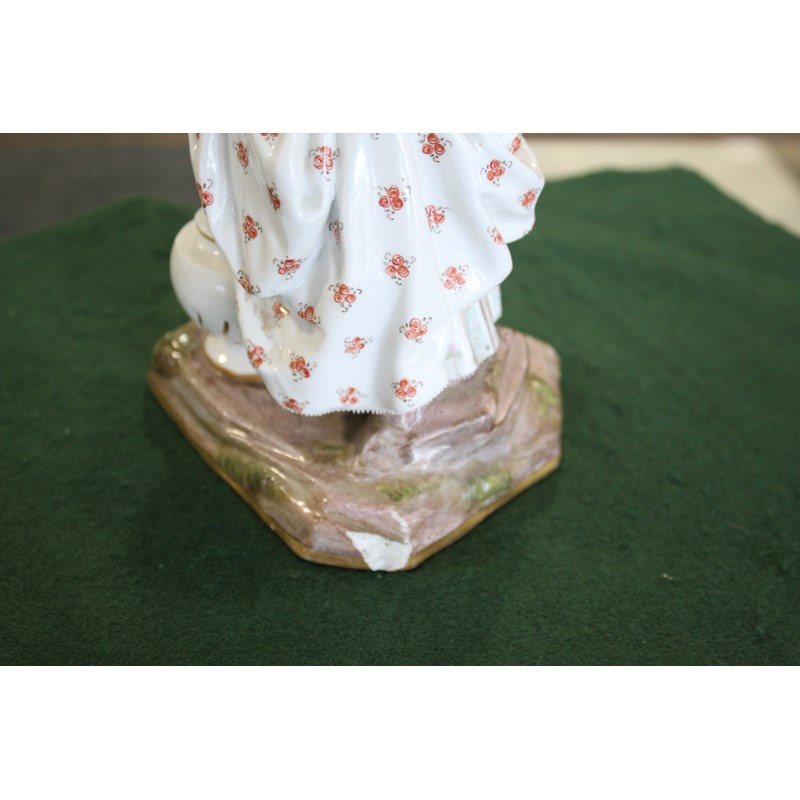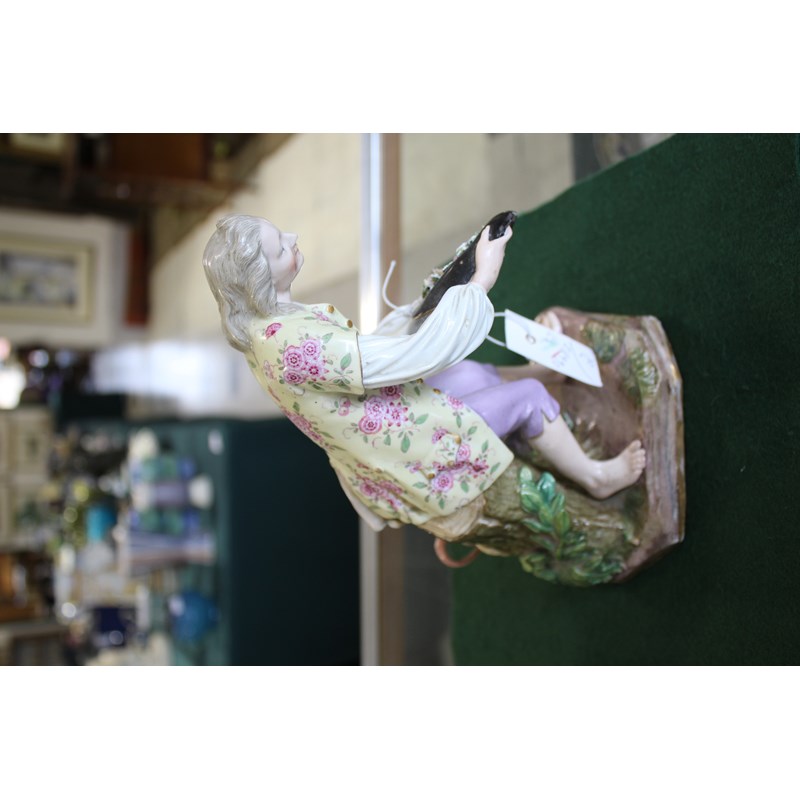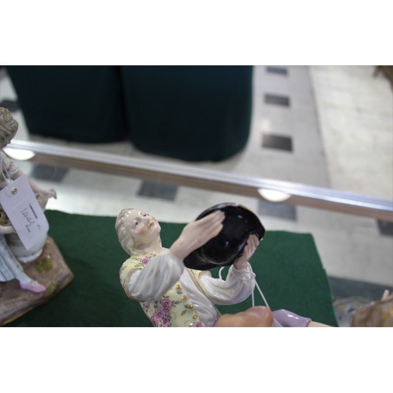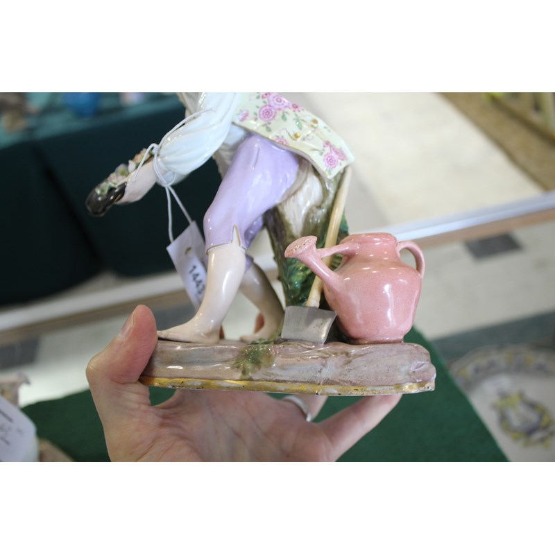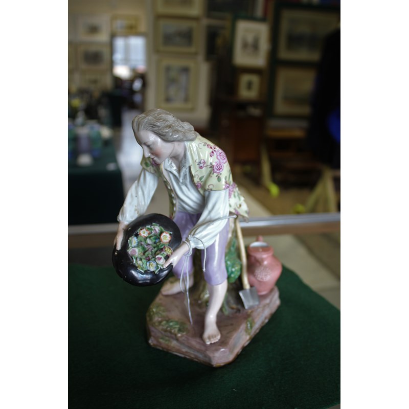 PAIR OF MEISSEN FIGURES late 19th or early 20th century, modelled as a rustic couple with a hat and basket of flowers, incised and blue crossed sword marks, height 22cm (2)