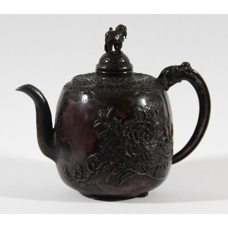 JAPANESE BRONZE TEA OR SAKE POT AND COVER