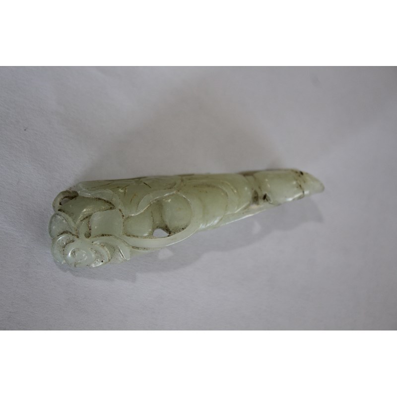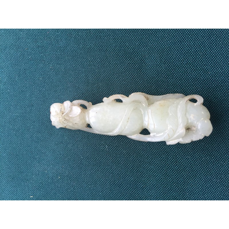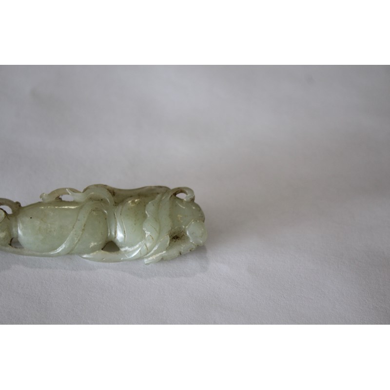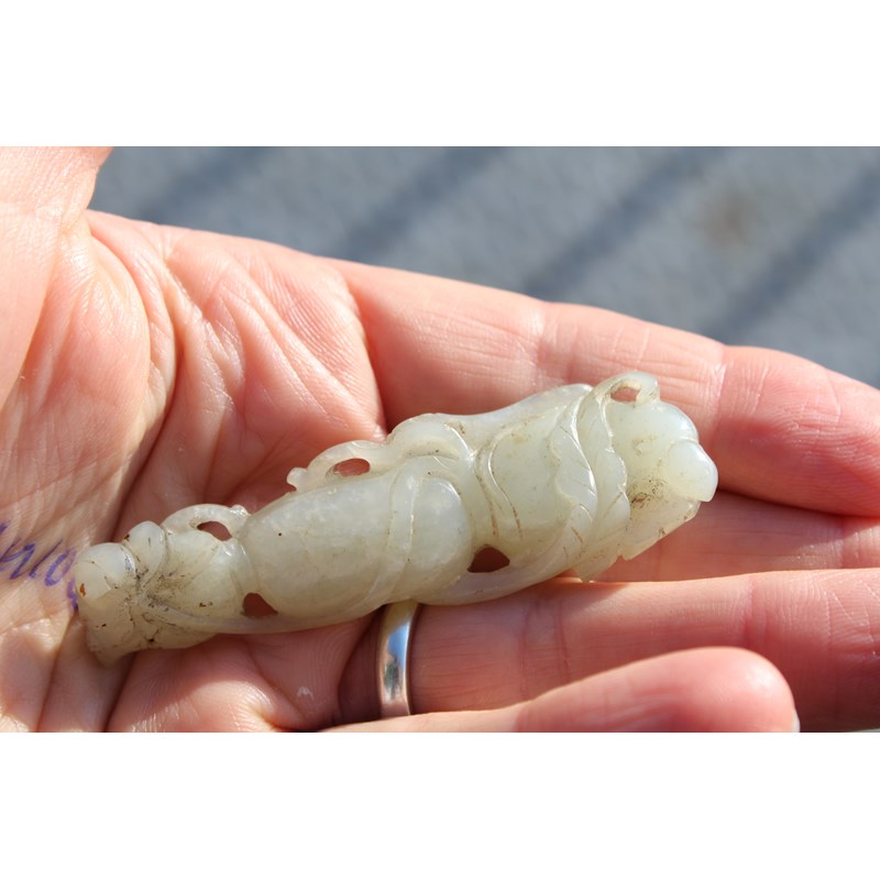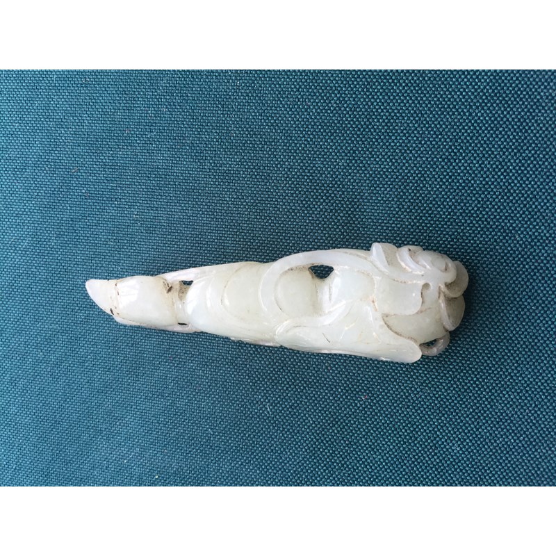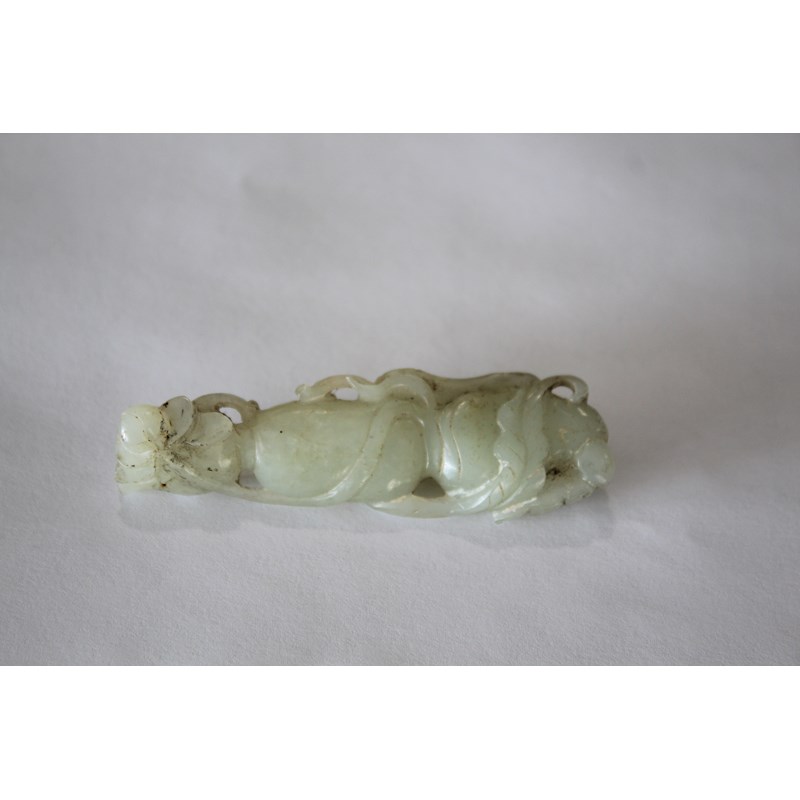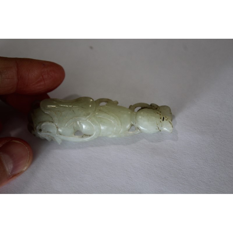 CHINESE PALE CELADON JADE PENDANT carved with lotus flowers and fruit, length 7.3cm