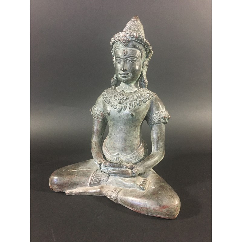 SOUTH EAST ASIAN DEITY perhaps Thai, seated cross legged, height 31.5cm