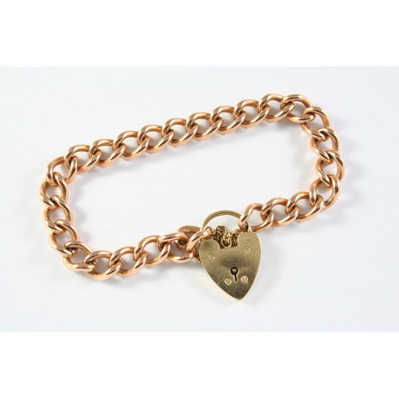 A 9CT GOLD CURB LINK BRACELET with 9ct gold padlock clasp, each link marked for 9ct gold, 19.5cm long, 34.7 grams