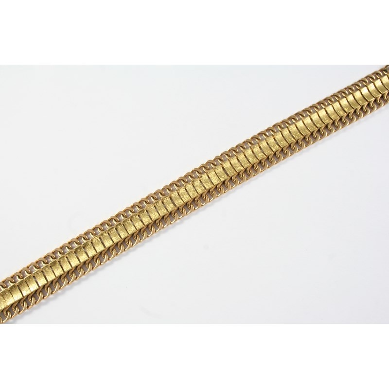 A GOLD FANCY LINK BRACELET with concealed clasp, 21cm long, 47.9 grams