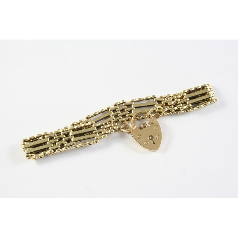 A 9CT GOLD GATE LINK BRACELET with padlock clasp, 16.5cm long, 20.3 grams