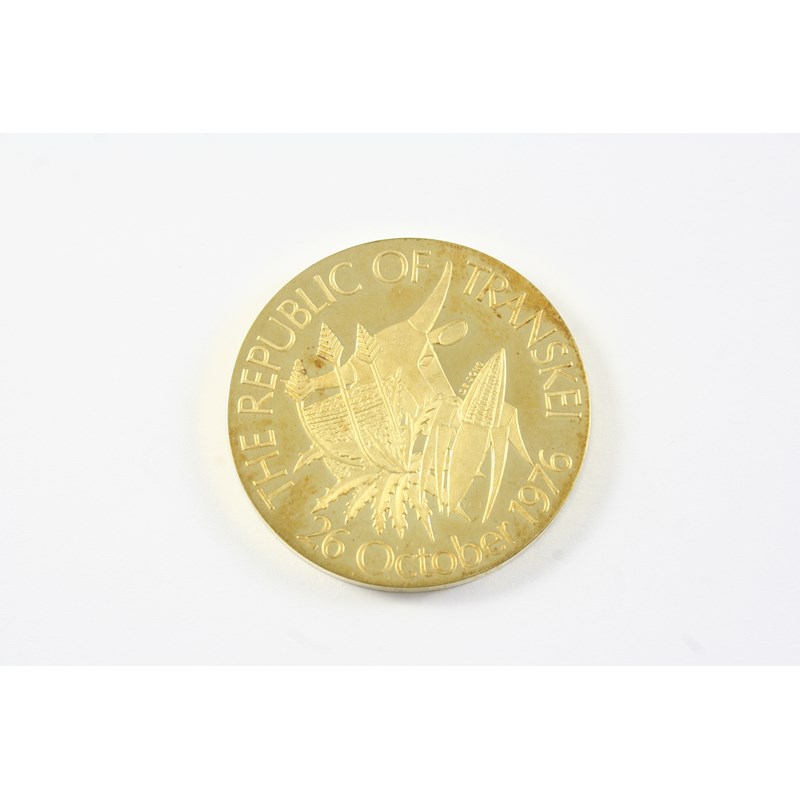 AN 18CT GOLD SOUTH AFRICAN HISTORICAL MEDALLION celebrating the independence of Transkei on 26th October 1976, 41.2 grams
