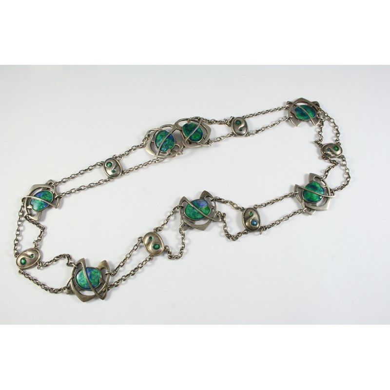 AN ART NOUVEAU ENAMEL AND SILVER NECKACE BY LIBERTY & CO
