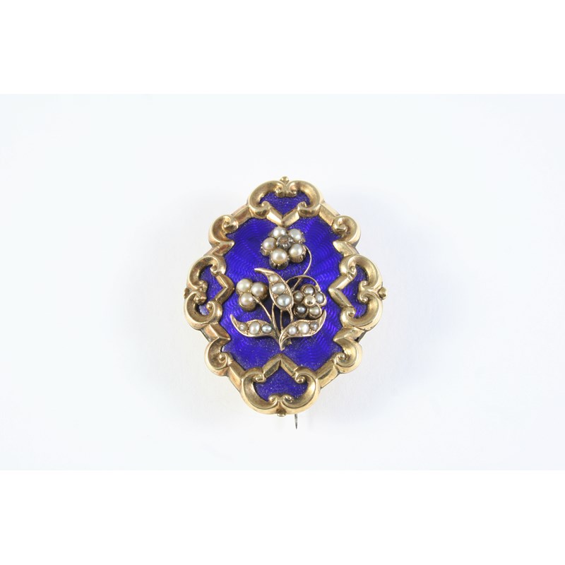 A VICTORIAN ENAMEL, PEARL AND GOLD BROOCH