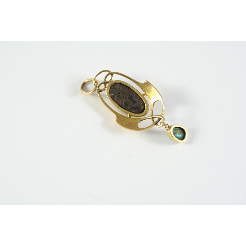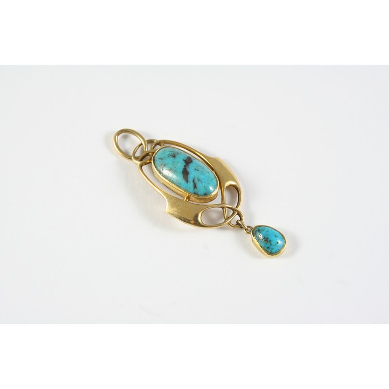 AN ARTS & CRAFTS TURQUOISE AND GOLD PENDANT BY MURRLE BENNETT & CO