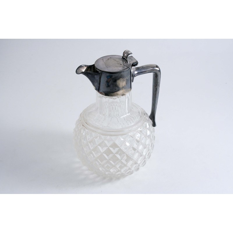A LATE VICTORIAN MOUNTED CUT GLASS CLARET JUG