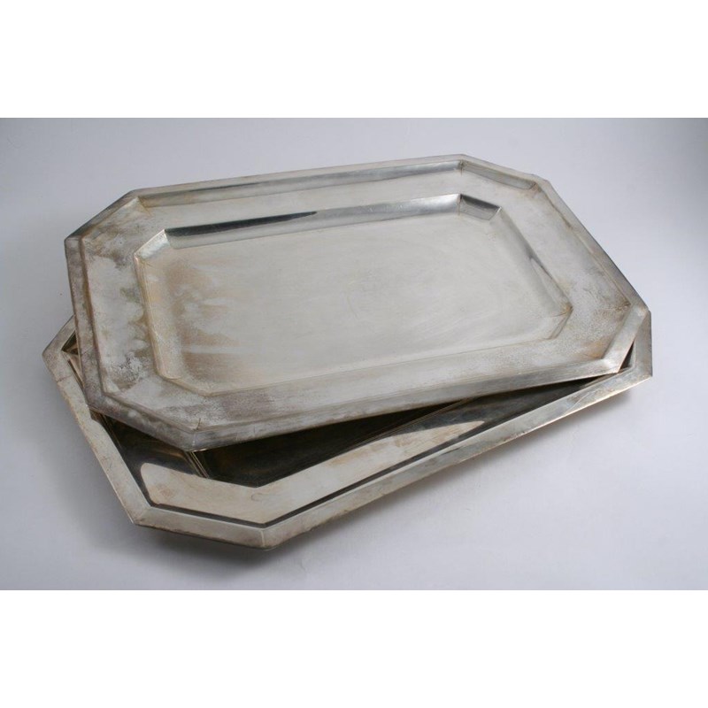 of plain canted oblong form, with plain borders, maker's mark "JG", Paris 1925-1940; 17.25" (44 cms) long; 96.1 oz (2)