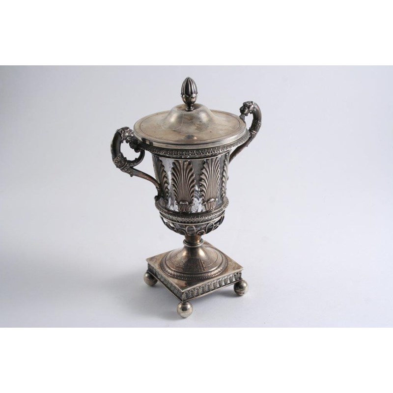 with ball feet, pierced sides & a cut glass liner, maker's mark "DG", Paris 1819-1838; 8.0" (22.5 cms) high; 10.8 oz weighable silver