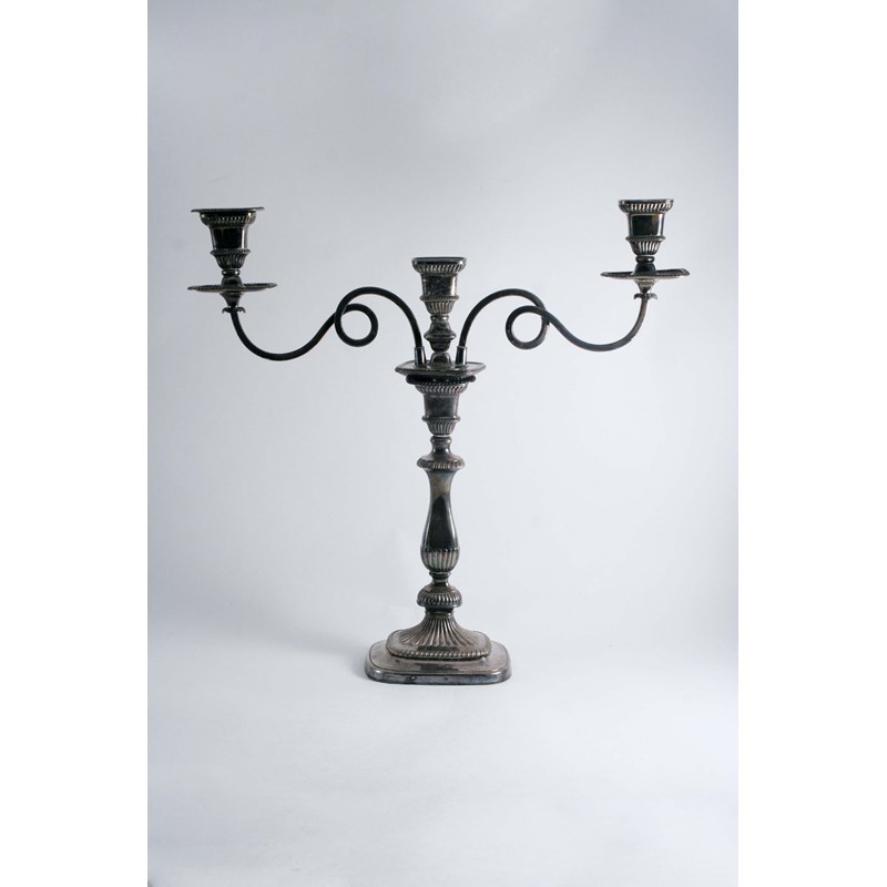 on rounded oblong bases with part-fluted decoration & curly scroll branches, 1815-1820 (three nozzles lacking); 19.4" (49 cms) high approx.