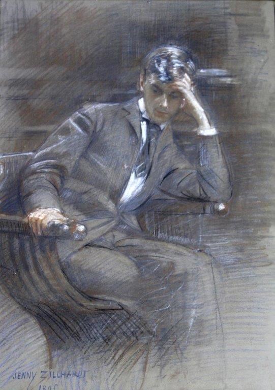 Signed and dated 1894, pencil and coloured chalks on buff paper
