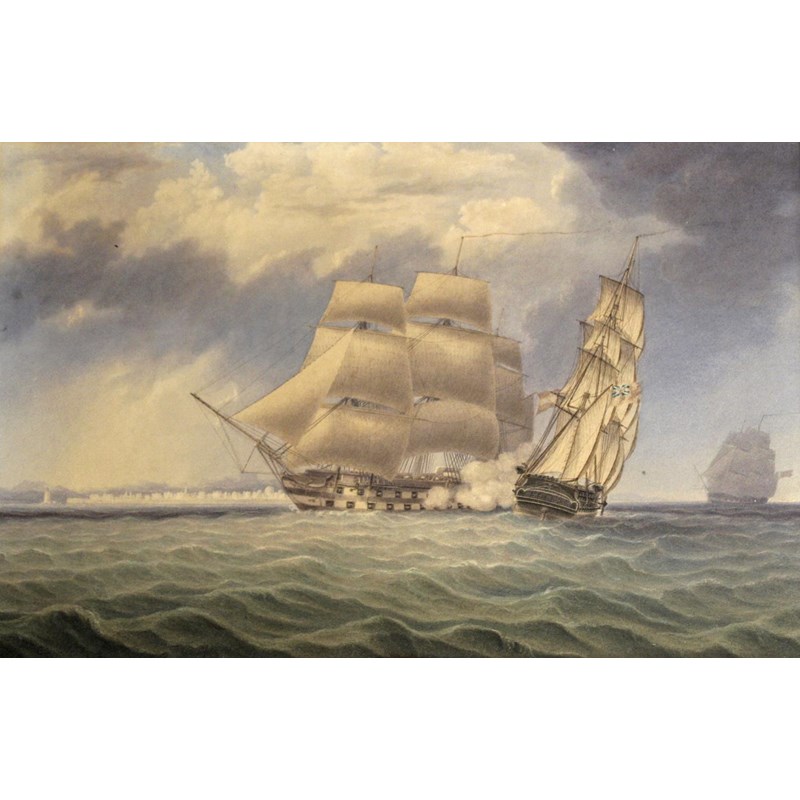 with a sepia wash and pencil sketch of a brig and other vessels at sea, by John Christian Schetky, 20 x 30cm. (2)