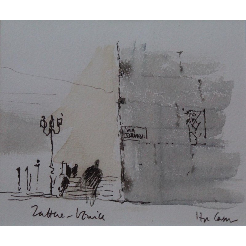 Signed, inscribed with title, pen and ink with washes