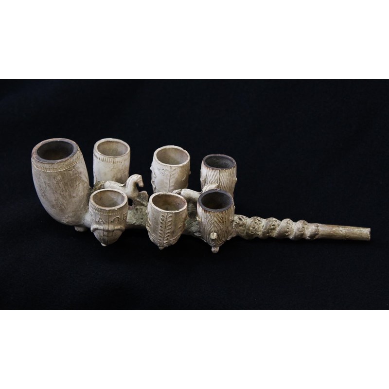 AN UNUSUAL ANTI DELUVIAN ORDER OF BUFFALOES MULTI-BOWLED PIPE,