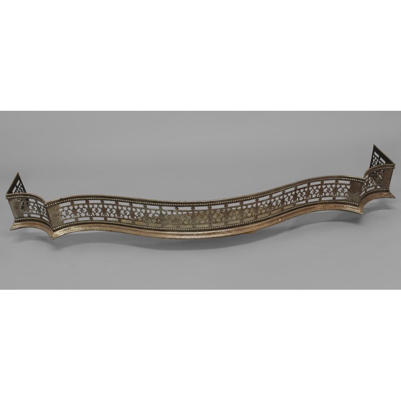 A VICTORIAN POLISHED STEEL FIRE KERB, with a serpentine front with beaded, pierced and cut decoration on a moulded base, 16.5cm high, 170 cm wide.