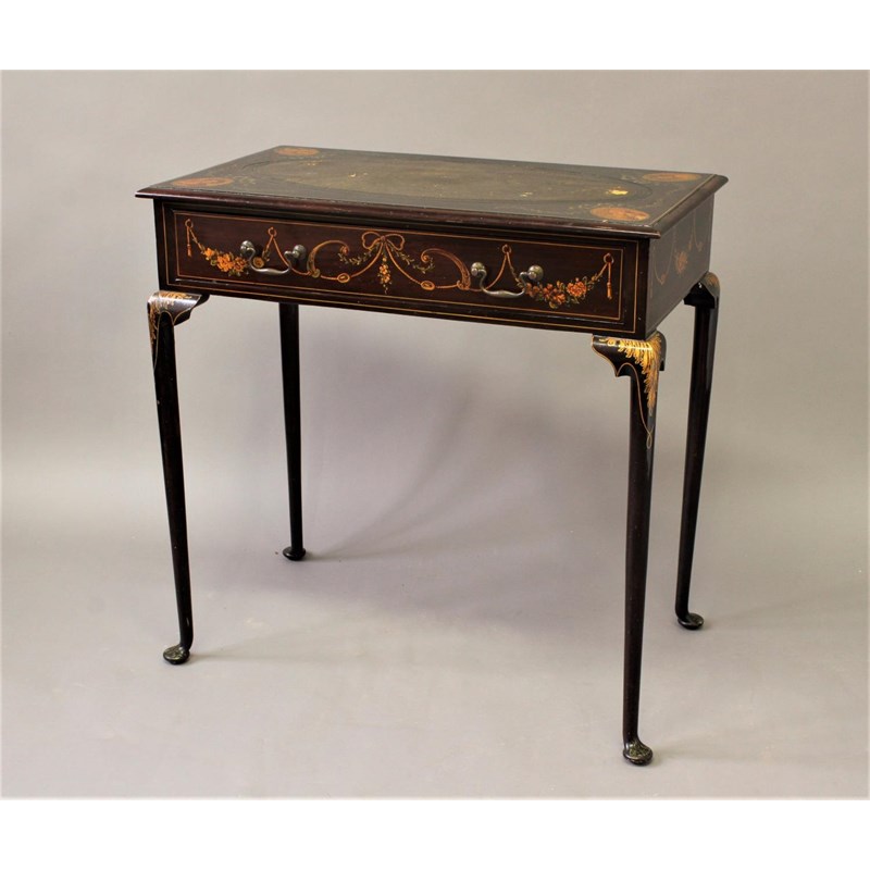 AN EDWARDIAN SIDE TABLE WITH PAINTED DECORATION,