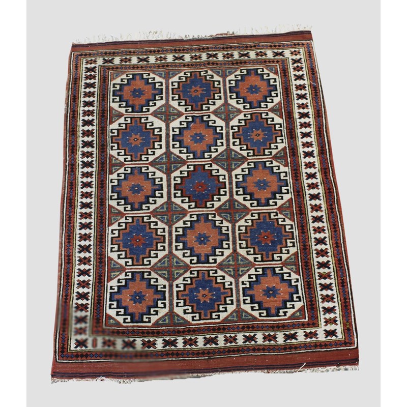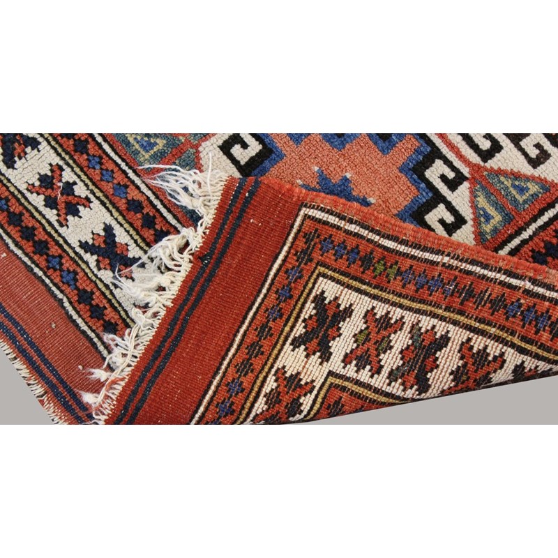 KAZAK RUG, Central Caucasus, circa 1890. The ivory field of Memling guls enclosed by borders of geometric motifs flanked by guard stripes, 135 x 105cm