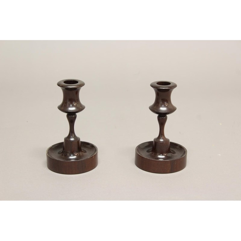 A PAIR OF VICTORIAN TURNED CANDLESTICKS.