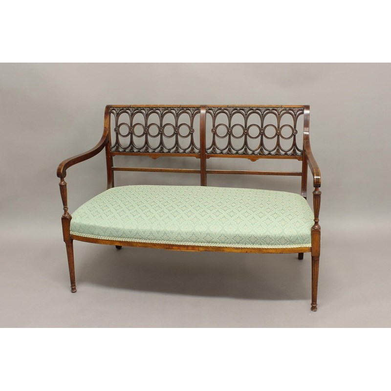 AN EDWARDIAN SHERATON REVIVAL SETTEE.