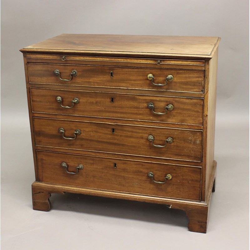 GEORGE III MAHOGANY BACHELOR'S CHEST, with four graduated drawers below a brushing slide, on bracket feet, height 82cm, width 85cm, depth 46cm