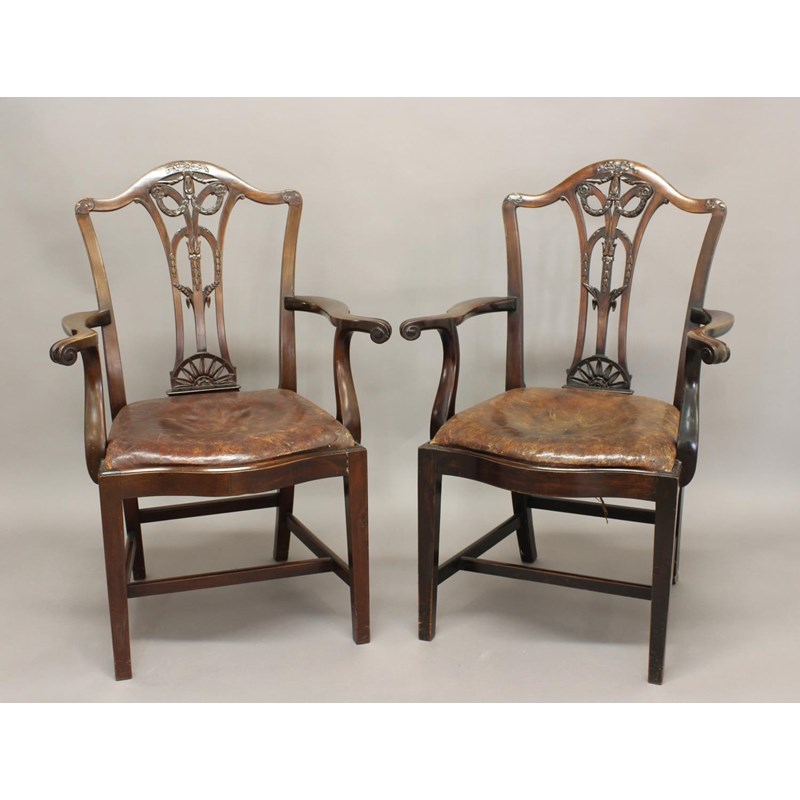 PAIR OF CHIPPENDALE STYLE MAHOGANY ARMCHAIRS,