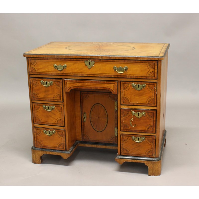 A GEORGE III SATINWOOD VENEERED KNEEHOLE DESK.