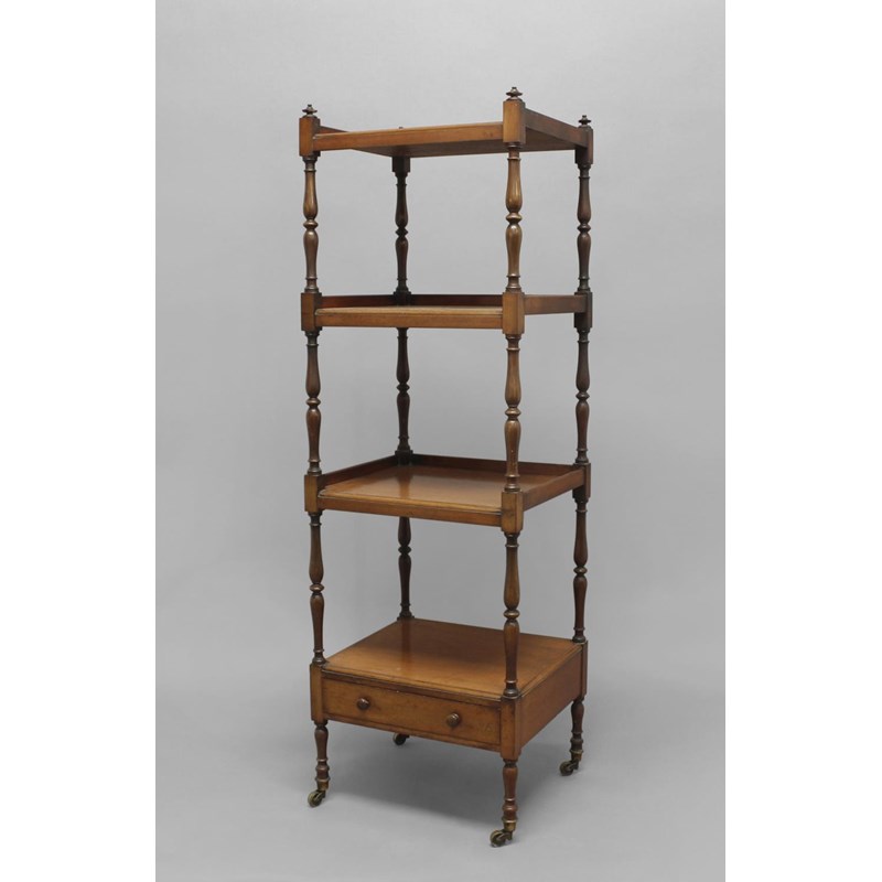 A 19TH CENTURY FOUR TIER MAHOGANY WHATNOT, on turned supports with single drawer, 156cm high, 50cm wide, 44cm deep