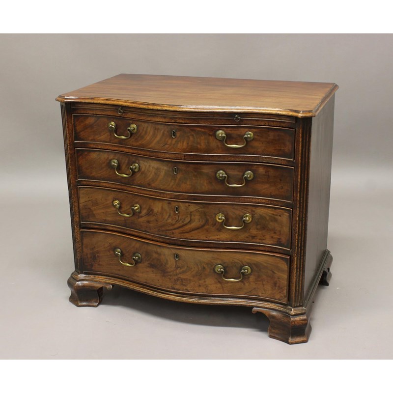 A GEORGE III MAHOGANY SERPENTINE FRONTED DRESSING CHEST,