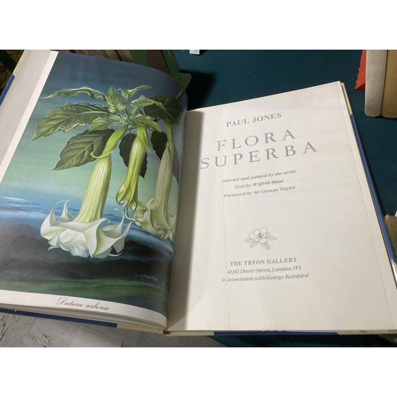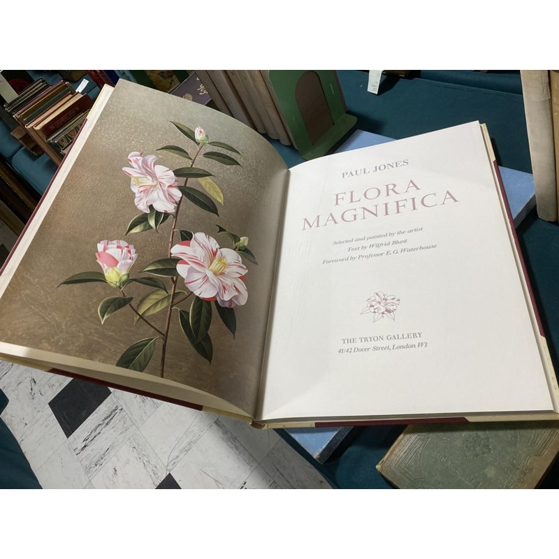 Jones, Paul. Flora Superba... text by Wilfrid Blunt, number 94 of 406 copies, 16 coloured plates, tissue guards, original vellum-backed boards by Zaehnsdorf, top edge gilt, slipcase, folio, London: Tryon Gallery, 1971; Flora Magnifica... text by Wilfrid Blunt, number 94 of 506 copies, signed by the artist, 16 coloured plates, tissue guards, original vellum-backed boards by Zaehnsdorf, top edge gilt, slipcase, folio, London: Tryon Gallery, 1976 (2)