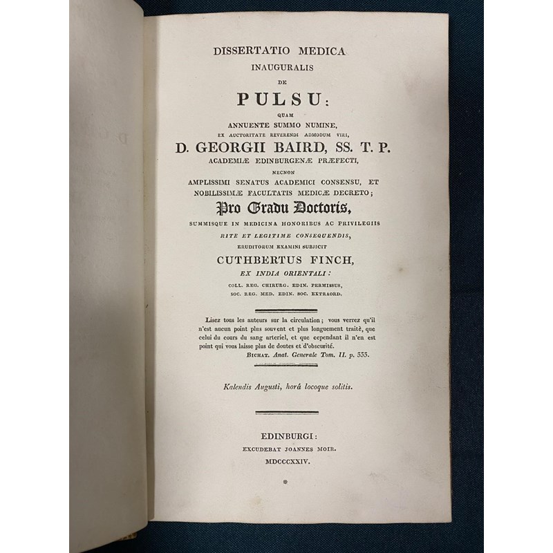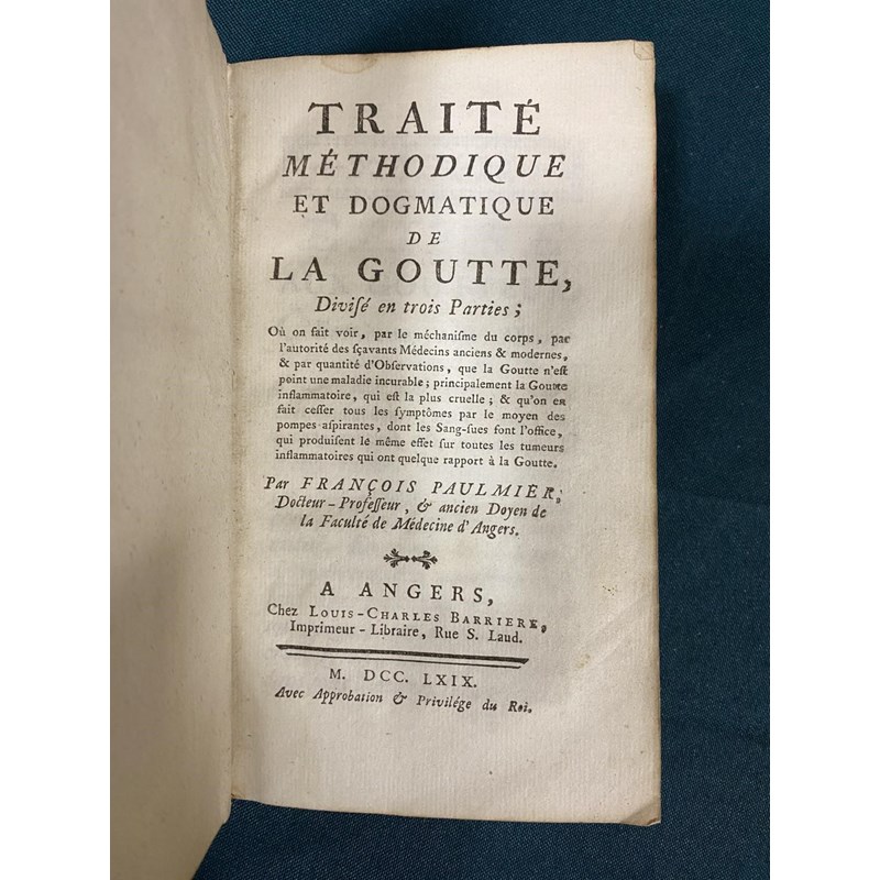 Paulmier, Francois. Traite Methodique et Dogmatique de la Goutte, contemporary calf, spine gilt, 8vo, Angers: Louis-Charles Barriere, 1769; Baird, George. Dissertatio Medica Inauguralis de Pulsu, contemporary full calf, 8vo, Edinburgh: Joannes Moir, 1824 (2)